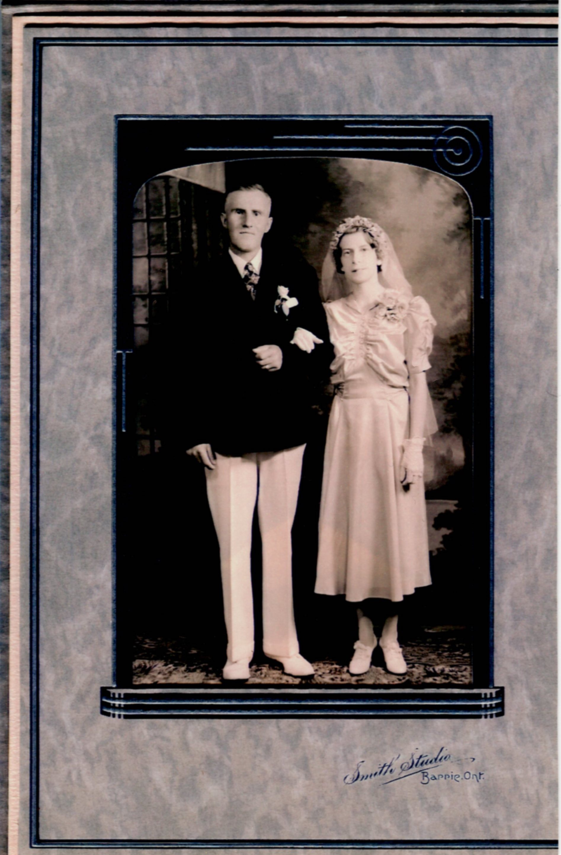 A wedding portrait of Cliff Lockhart and Florence Knupp, married June 24th 1939.