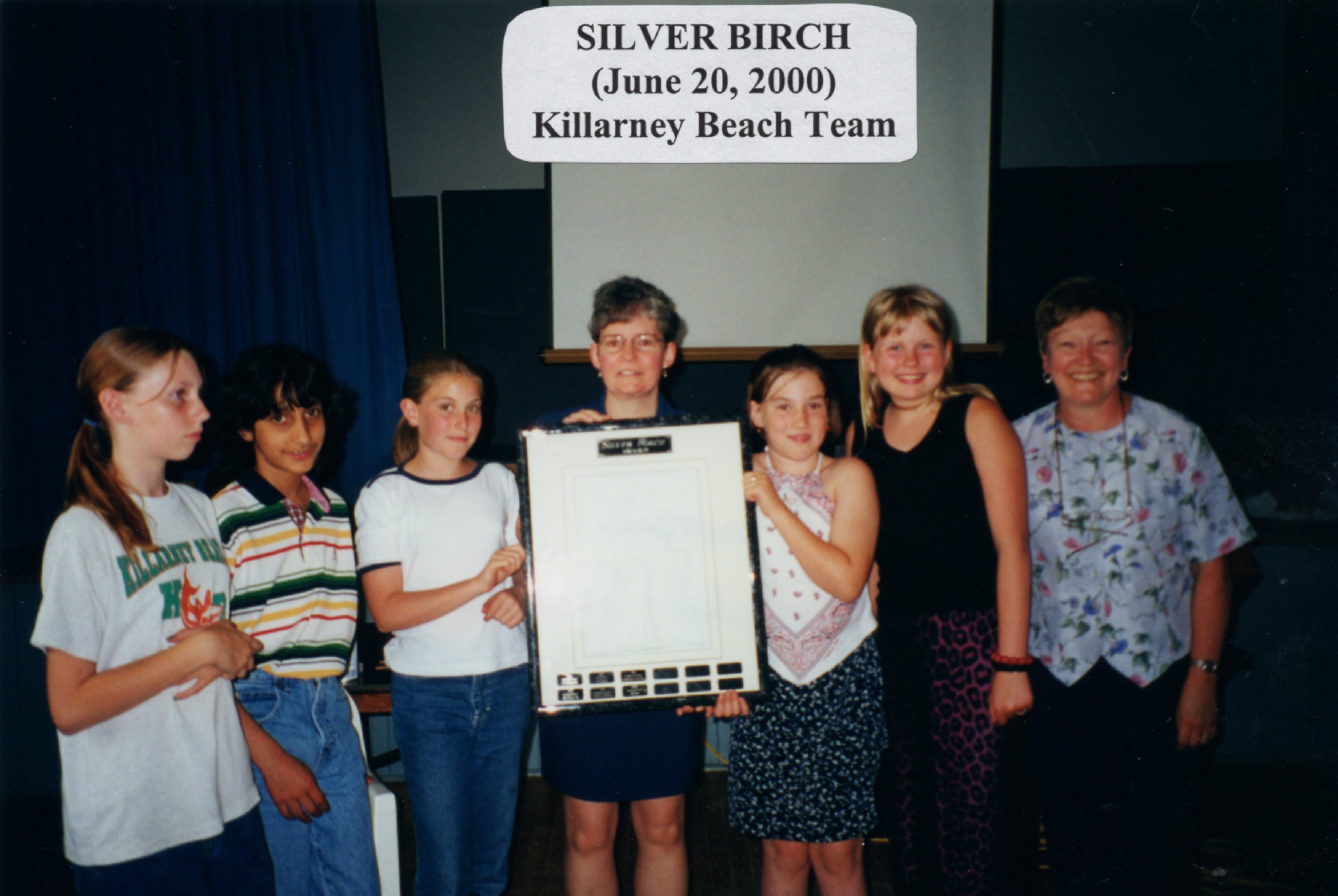 Members of the Killarney Beach Team that participated in the "Silver Birch Battle of the Books", consisting of five children, posing for an image with teacher and librarian, Jeanette Herman.