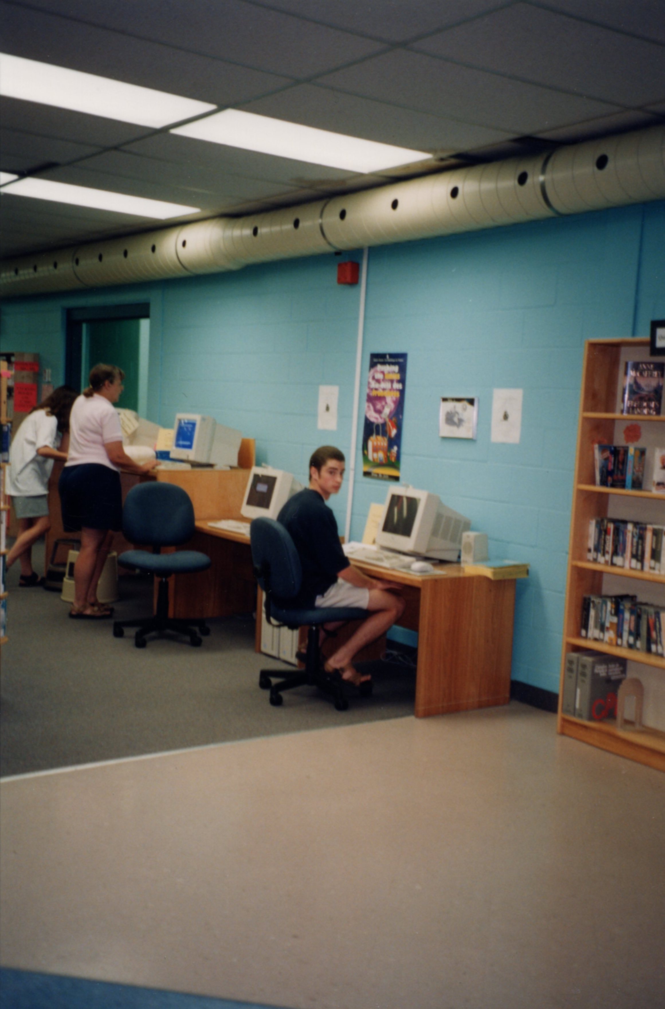 Photograph showing people utilizing the public computers at the Stroud branch of Innisfil Public Library.