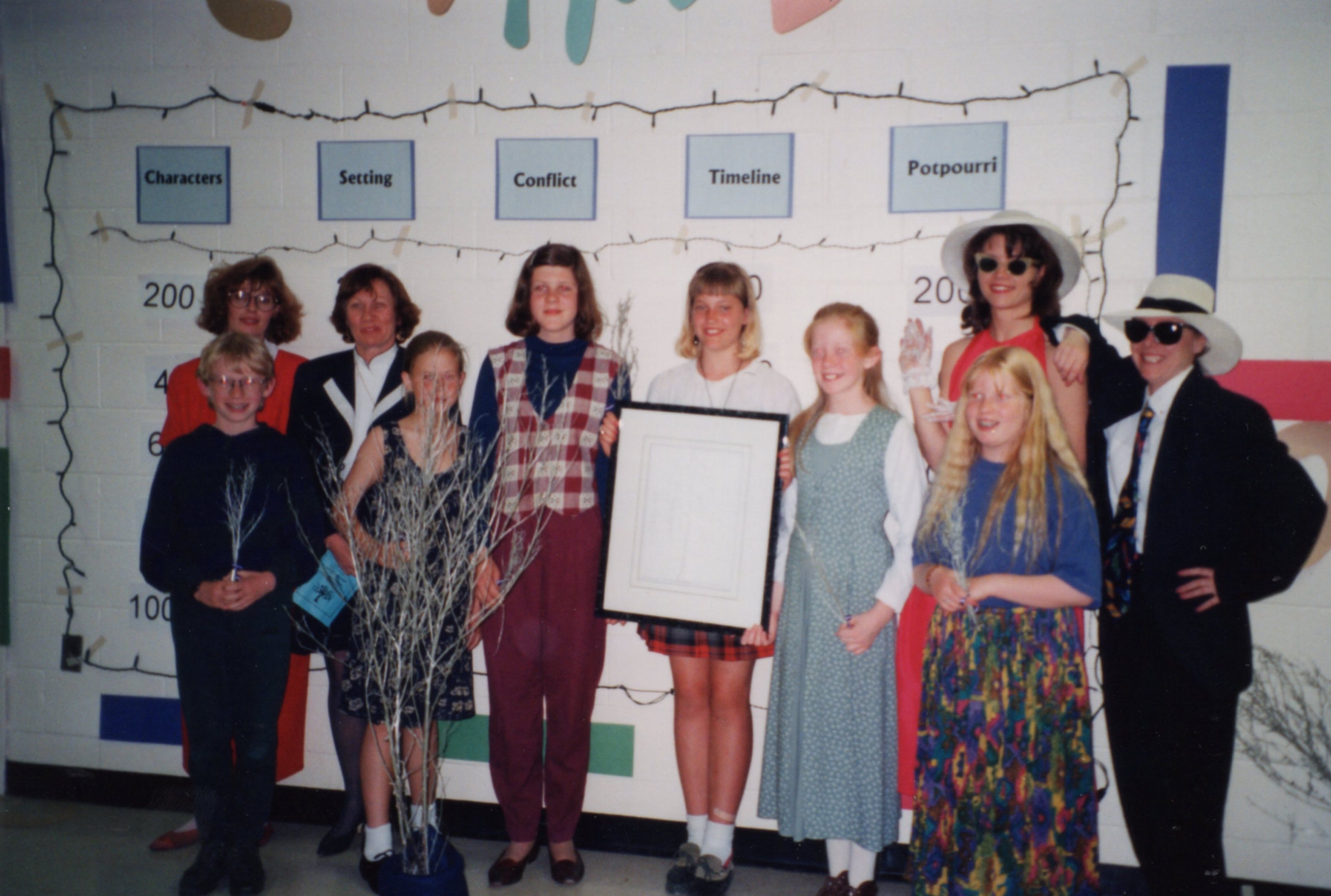 Photograph of students from Innisfil Central participating in a public speaking event at the Stroud Branch of Innisfil Public Library.