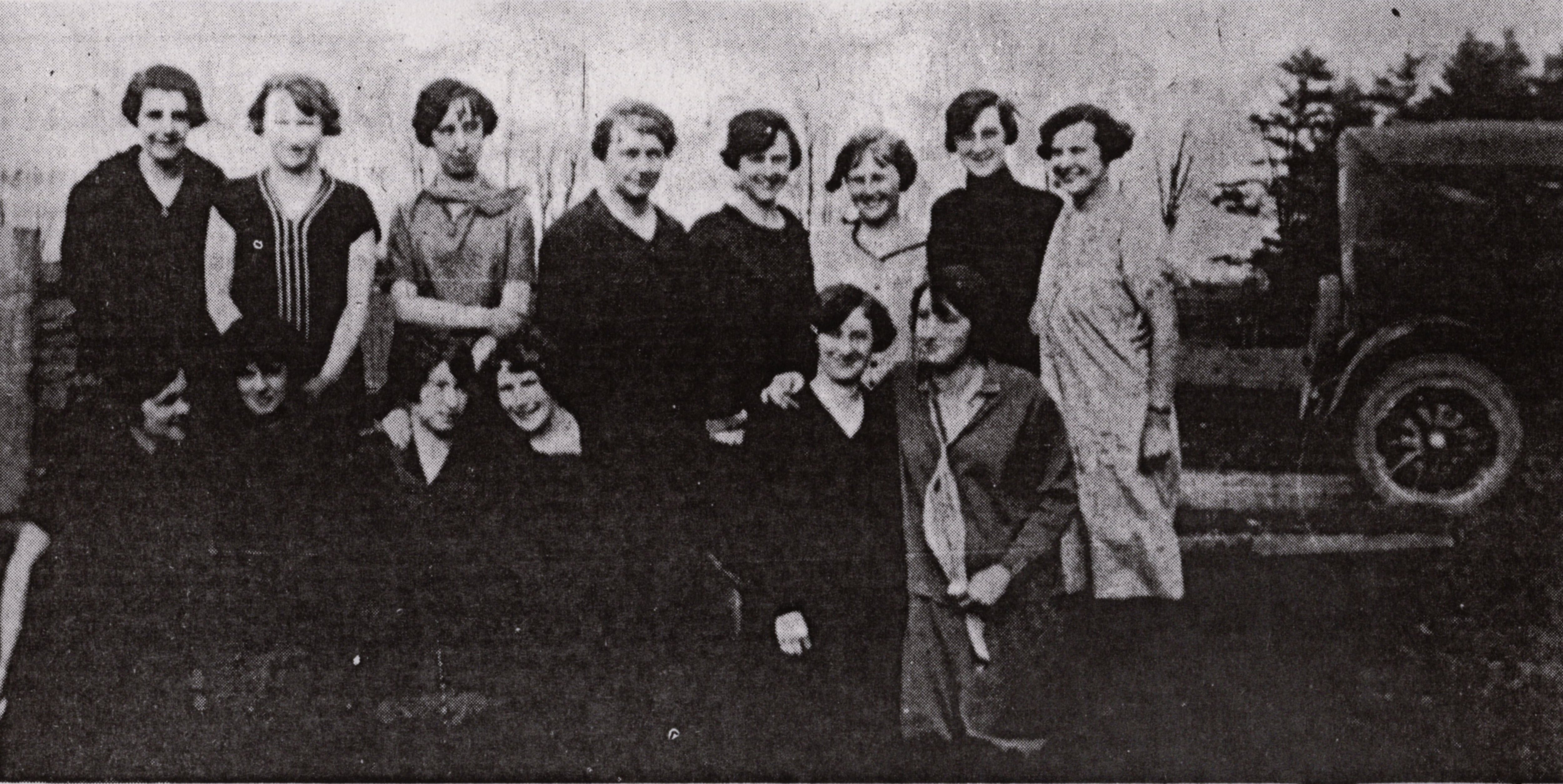 Newspaper clipping of an image, from the Witness, with the caption: "Churchill Junior Women's Institute was organized in 1925 with Agnes Todd (now Kneeshaw) as president. This picture, taken soon after, shows early members. Front row: (l to r) Del Kneeshaw, Eva Allan, Lois Todd, Dorothy Bell, Alberta Kneeshaw, Mina Constable. Back row: Georgie Reive, Agnes Todd, Alma Comer, Iva King, Helen King, Eileen King, Margaret Robertson and Ethel Kell. This picture is courtesy Dorothy Bell Hood." Poor resolution is due to the acquisition being a photocopy, if you have an original copy of this document please contact the library.