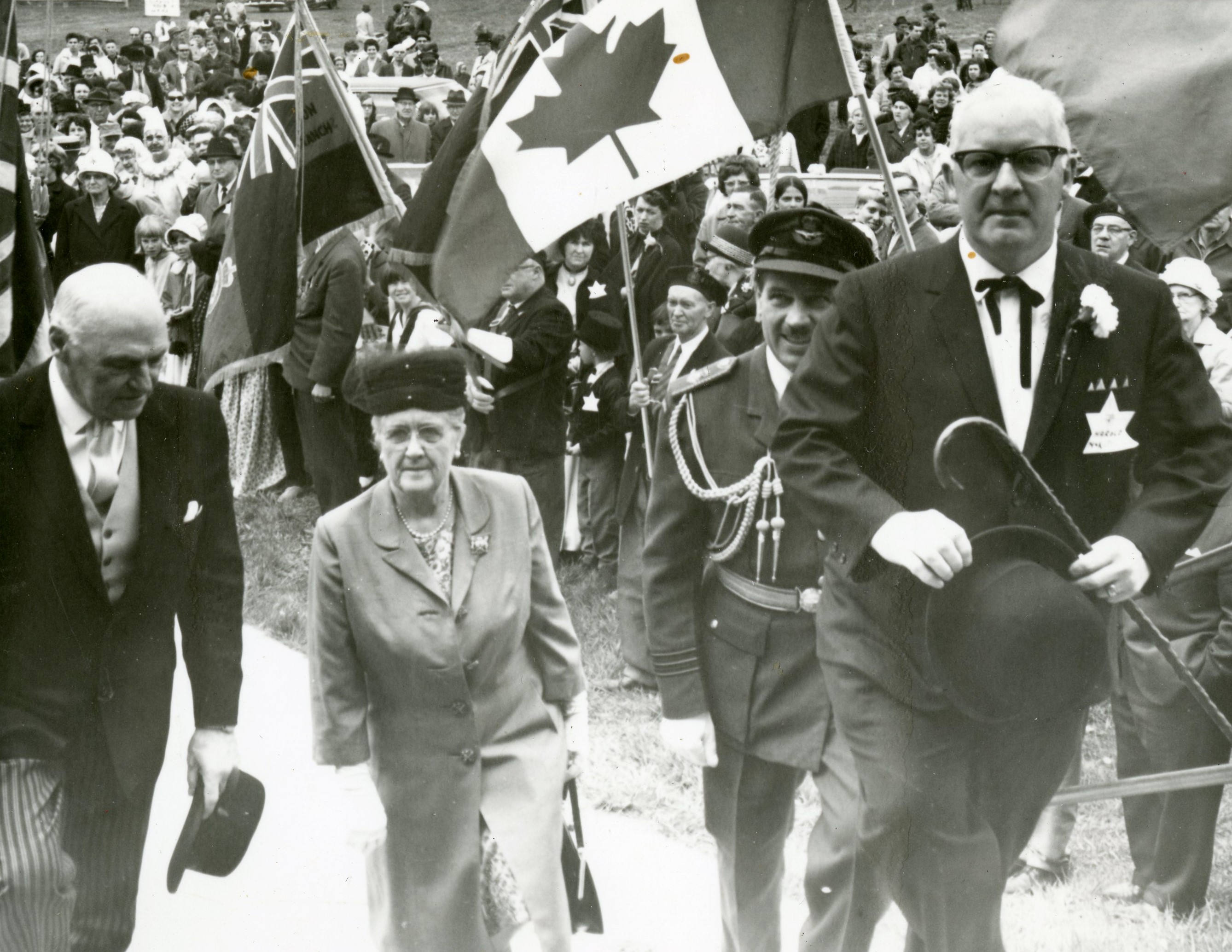 Dignitaries approaching the camera during celebrations at the Cookstown Fairgrounds.