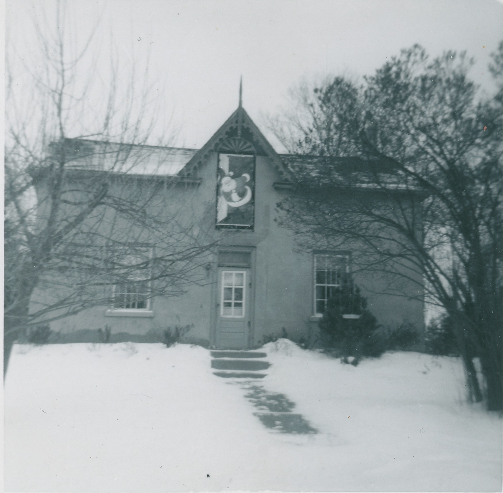 Photo of stucco house with centre dormer and entrance
