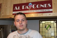 Photo of Andrew Roden scooping ice cream at Al Pacones in Cookstown. This image was a submission for the Faces of Innisfil project.