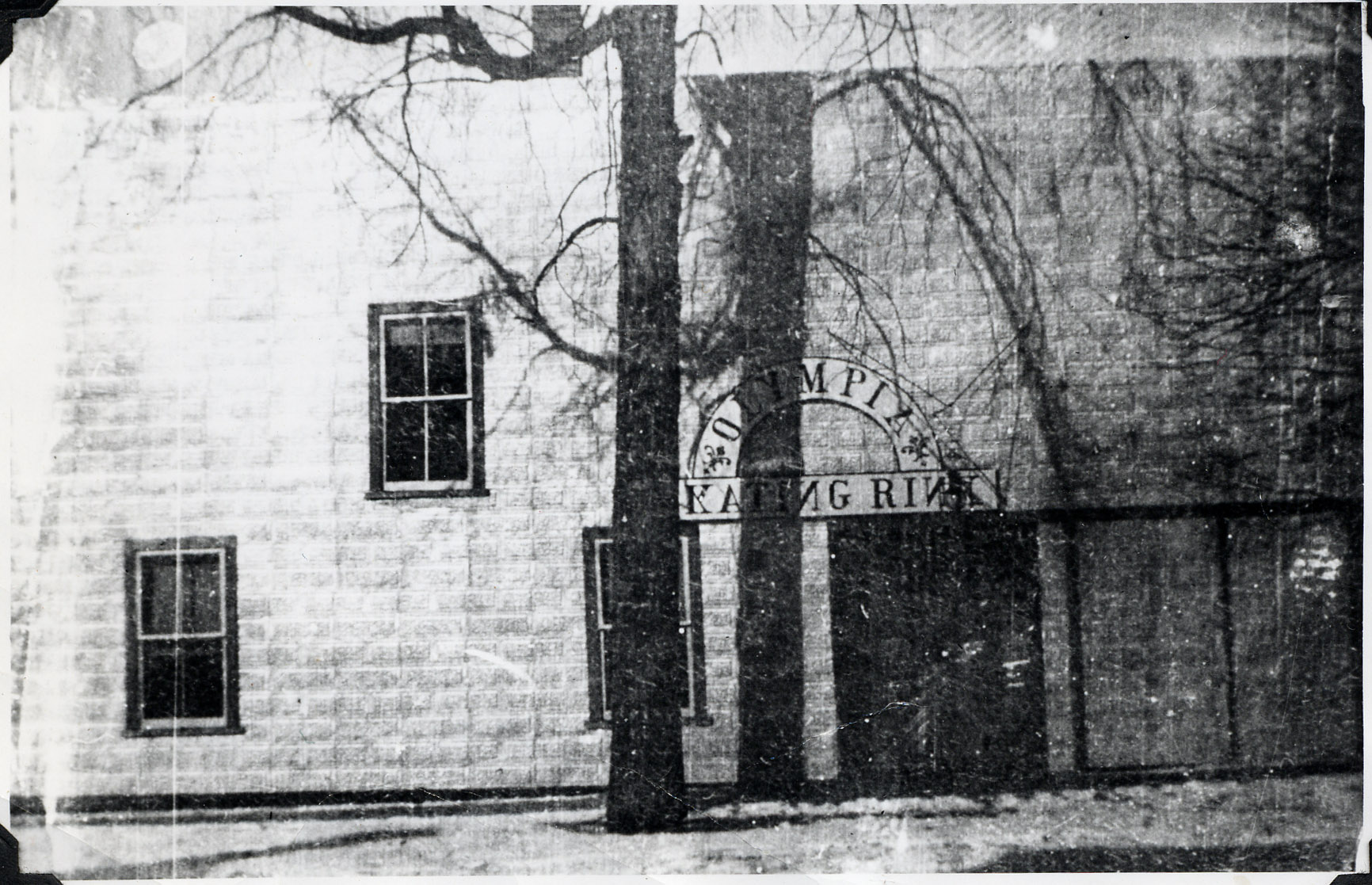 The Olympia Skating Rink was built in 1910 by Mr. T.L. Webb, between Wellington Street and Queen Street, just west of the four corners. The Cookstown Brass Band played Tuesday, Thursday, and Saturday evenings for skating and the ice surface was used for hockey on Mondays, Wednesdays, and Fridays. Dress carnivals were also held here, frequently drawing large crowds from the surrounding community. The rink was discontinued when large numbers of men enlisted in World War I. After it closed as a skating rink, Rankin and Dennis Nolan used it for car storage. Mr. Harry Rankin sold cars and had a garage. Harry Goodwin purchased the garage and also sold cars. Clarence Walker worked as the mechanic. Tenants included Albert Nixon, Mr. Rankin, Wilbert Dermott, and Ethel Jebb. Information courtesy of the Cookstown Tweedsmuir History volume 2, page 49.