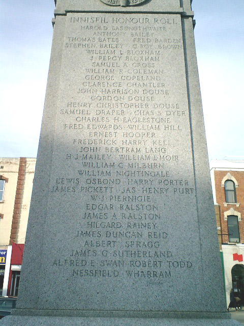 Innisfil Honour Roll on Barrie Cenotaph - World War I