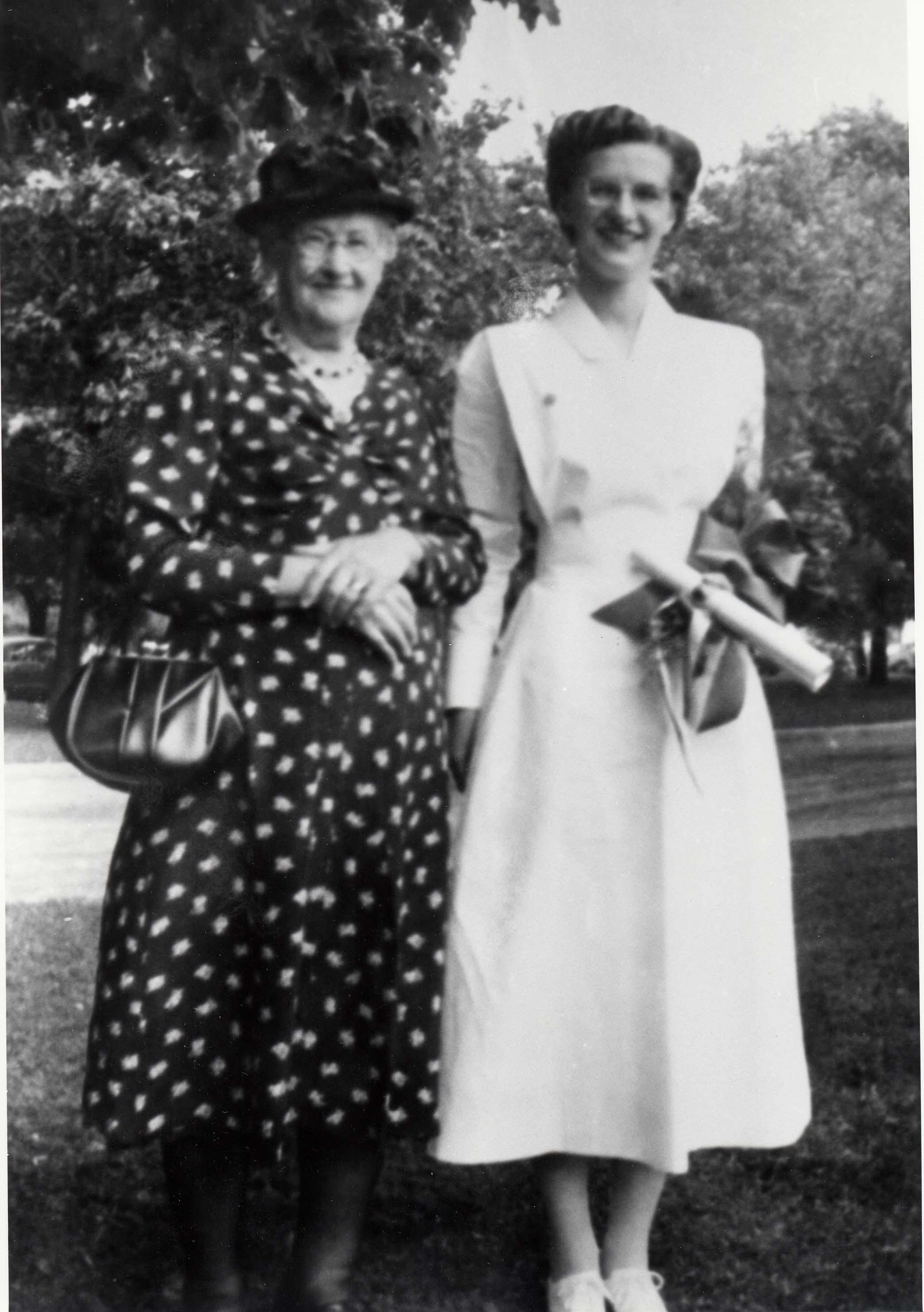 Location of original: Whitby Left to Right: Mrs. Sarah Irving and Gladys Miller-- Graduation day from Whitby Psychiatric Hospital
