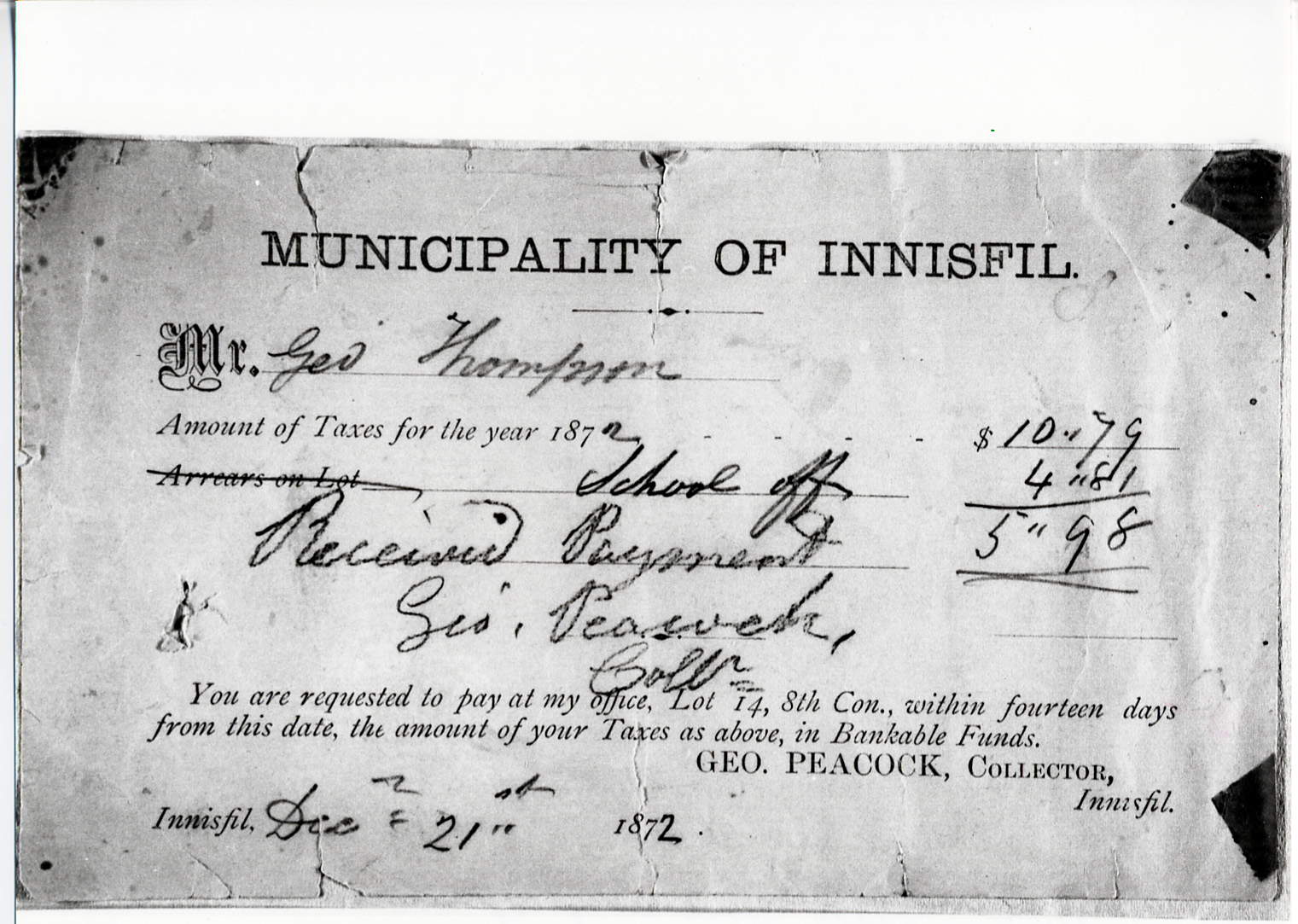 TAXES -"Received payment" $5.98 George Thompson George Peacock