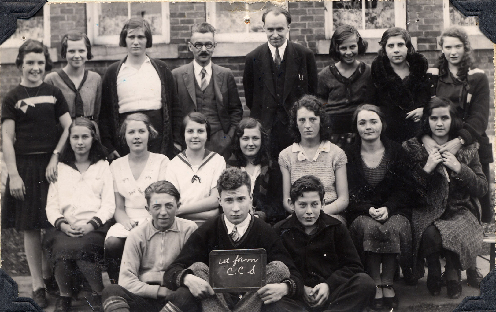 Back Row: Jean Row, Ina Edney, Ruth Robertson, Mr. Floyd Hartley, Mr. Harold Pearson, Jean Webb, Dorothy Baker, Pat Hopper. Middle Row: Marguerite McFadyen, Lilliam McMaster, Beatrice Reed, Muriel Copeland, Madge Baker, Mary Taggart, Clara Harris. Front Row: Johnny Campbell, Bill Robinson, Russell Reed.