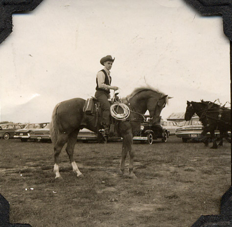 Horse entries in the parade. Mr. and Mrs. Bill Gethons of Thornton were judges of the entries. Richard Berghammer presented prizes, halters and bridles and a trophy.