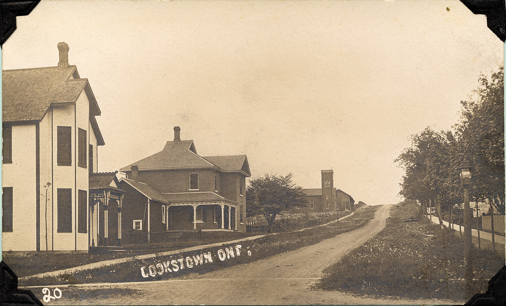 Church Street Looking East - Present owners of White House - D. Brown; Brick House - B. Mayes; Anglican Church; NOTE: Wooden Sidewalks and Gas Lamp. April 18, 1968