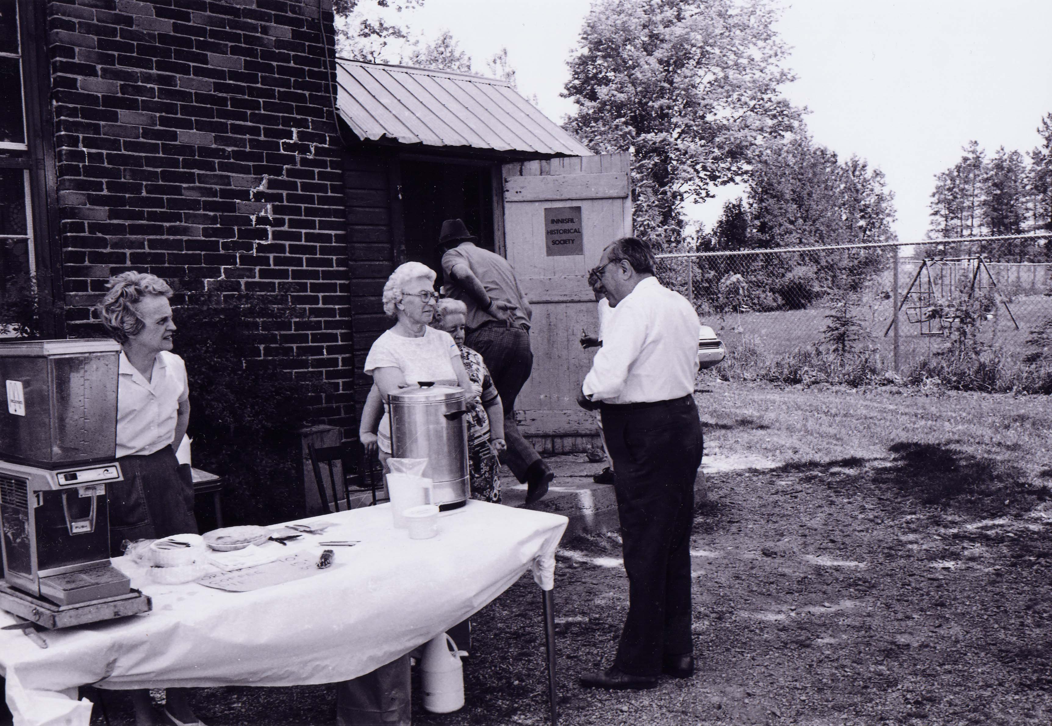 Innisfil Historical Society Fair, at the Old Warnica School, it was demolished in 1981. Left - Mrs. Robert Peppell Centre - Helen Wallace Right - Vera Nesle Robert Peppell (?) INNISFIL HISTORICAL SOCIETY