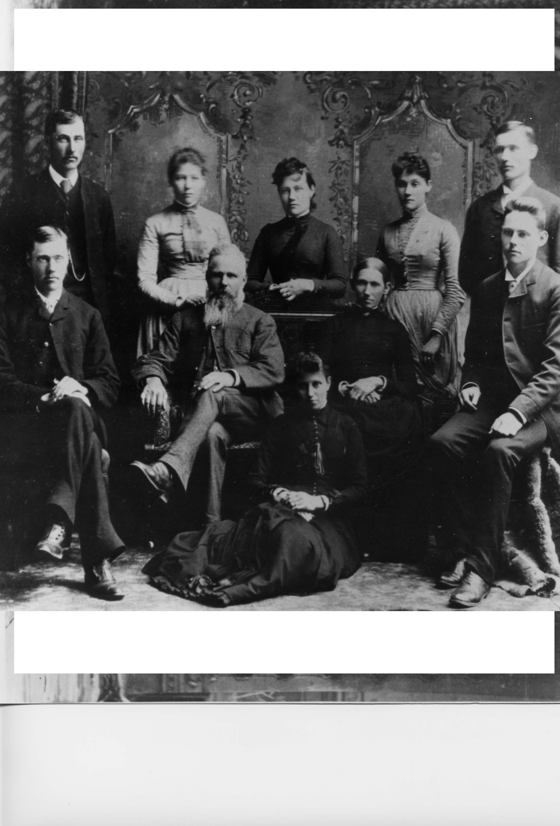 Mr. and Mrs. Arthur Robinson (nee Isabella Sproule) and their family. Front: (l to r) Alexander, Arthur Robinson and Mrs. Robinson and Arthur Jr. Sitting: Mary Jane Back: William, Isabella, Margaret, Annie, Robert. Lived at Killyleagh, SH Lot 5, Conc.5 and NH Lot 6, Conc. 3.