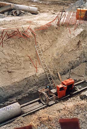 Sewer parts being installed in field close to Railway Tracks between Victoria and Selby Streets.