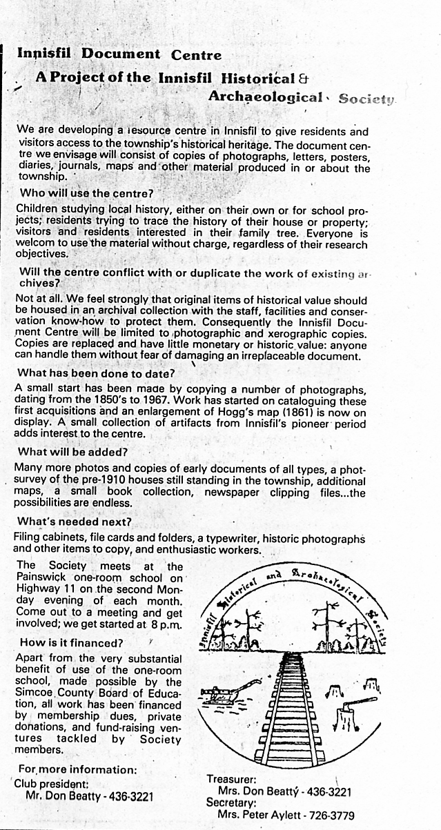 Photograph of newspaper clipping. CLUBS & ORGANIZATIONS - INNISFIL HISTORICAL SOCIETY