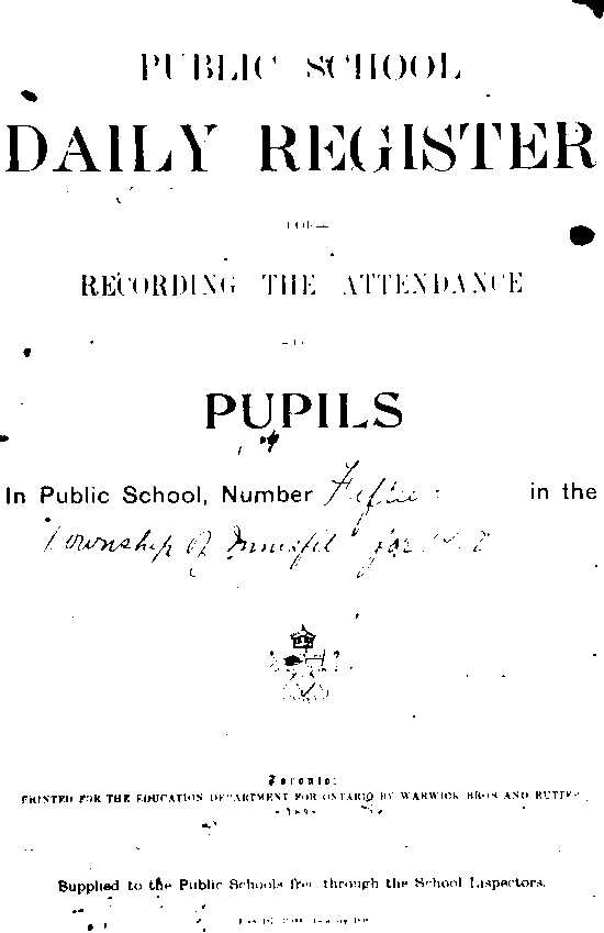 Knock School -S.S.#15 Public school Daily Register for the year 1900 Teacher - Waldon Lawr - Jan. to June - Britton Wright - Aug. to Dec. Schools