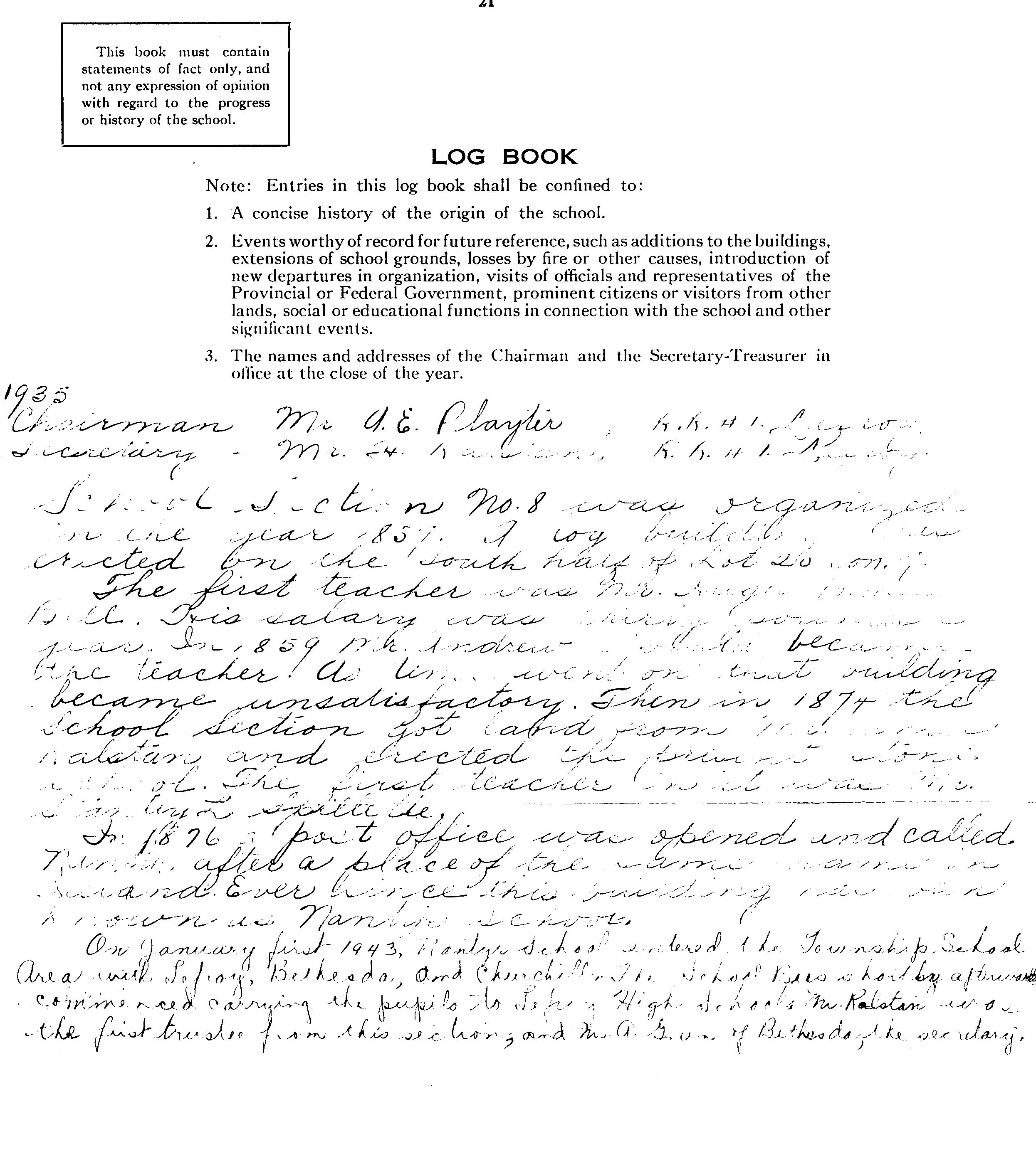Secretary-Treasurer's Minutes 1858-1924. Nantyr School, SS No.8. Book.