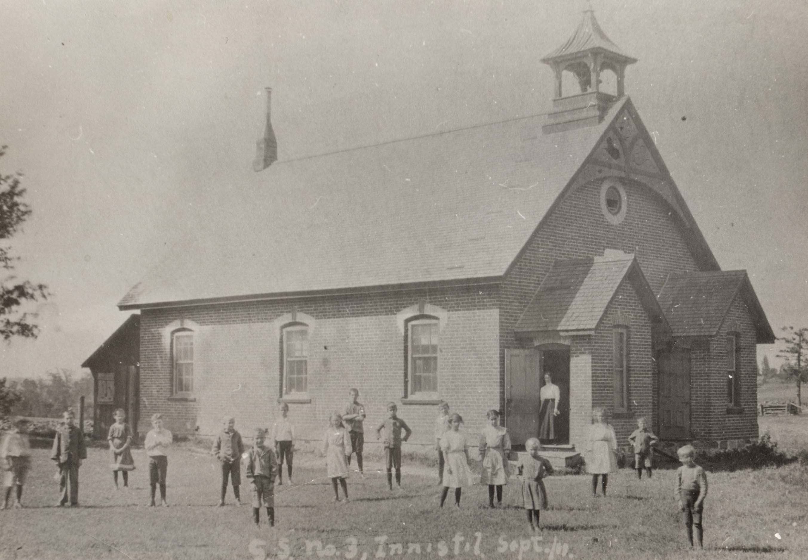 Cherry Creek School SS #3, Innisfil, September 1911. The Teacher was Mrs. Howard Allan (sister (Edna) to Edgar Sturgeon).