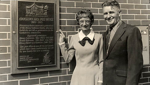 Mr. and Mrs. Bert Coleman proudly display the plaque erected in honour of the Coleman family.