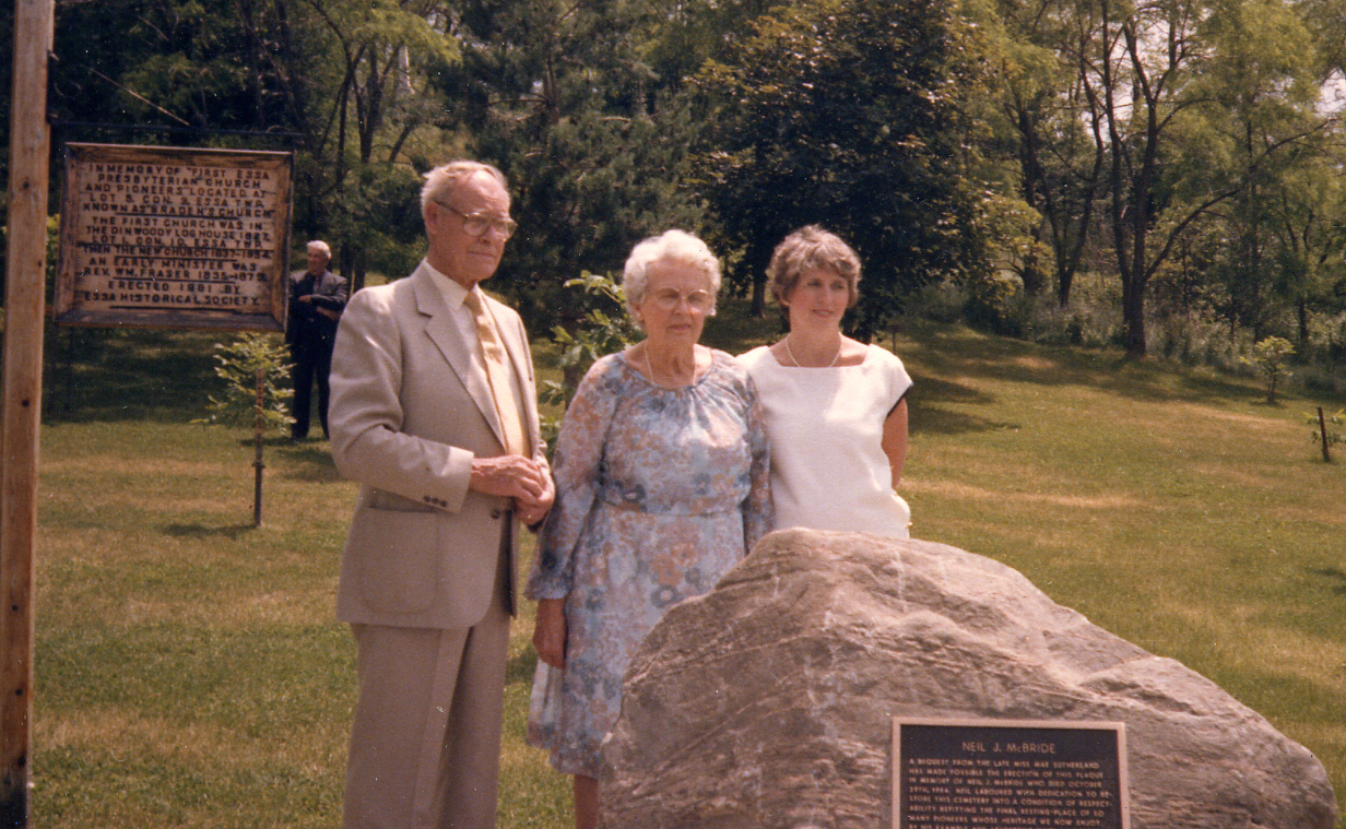 Memorial dedication service in honour of Neil McBride. His wife Isobel and daughter and Jack Dinwoody whose grandparents were also buried in this cemetery.