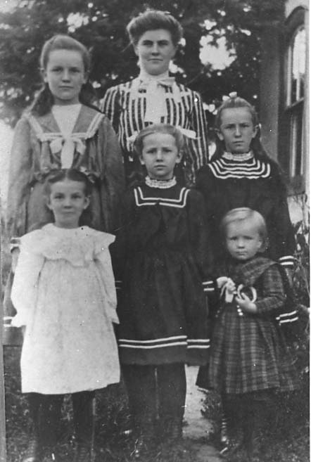 Children of John Reid and Jane Irving: Back row: Flora Winnifred Reid (sailor blouse) July 12, 1890 - Apr. 6, 1952 Jane May Reid (striped blouse) Aug. 15, 1887 - May 24, 1947 Middle Row: Gladys Viola Reid Aug. 25, 1897 - 1976.Arlie Lillian Reid Apr. 2, 1896 - Zella Evelyn (4 stripes) May 7, 1893 - Front Row: Haughton Lennox Reid (Haughton plaid) Aug. 25, 1900 - Oct. 9, 1966 Costumes and clothing