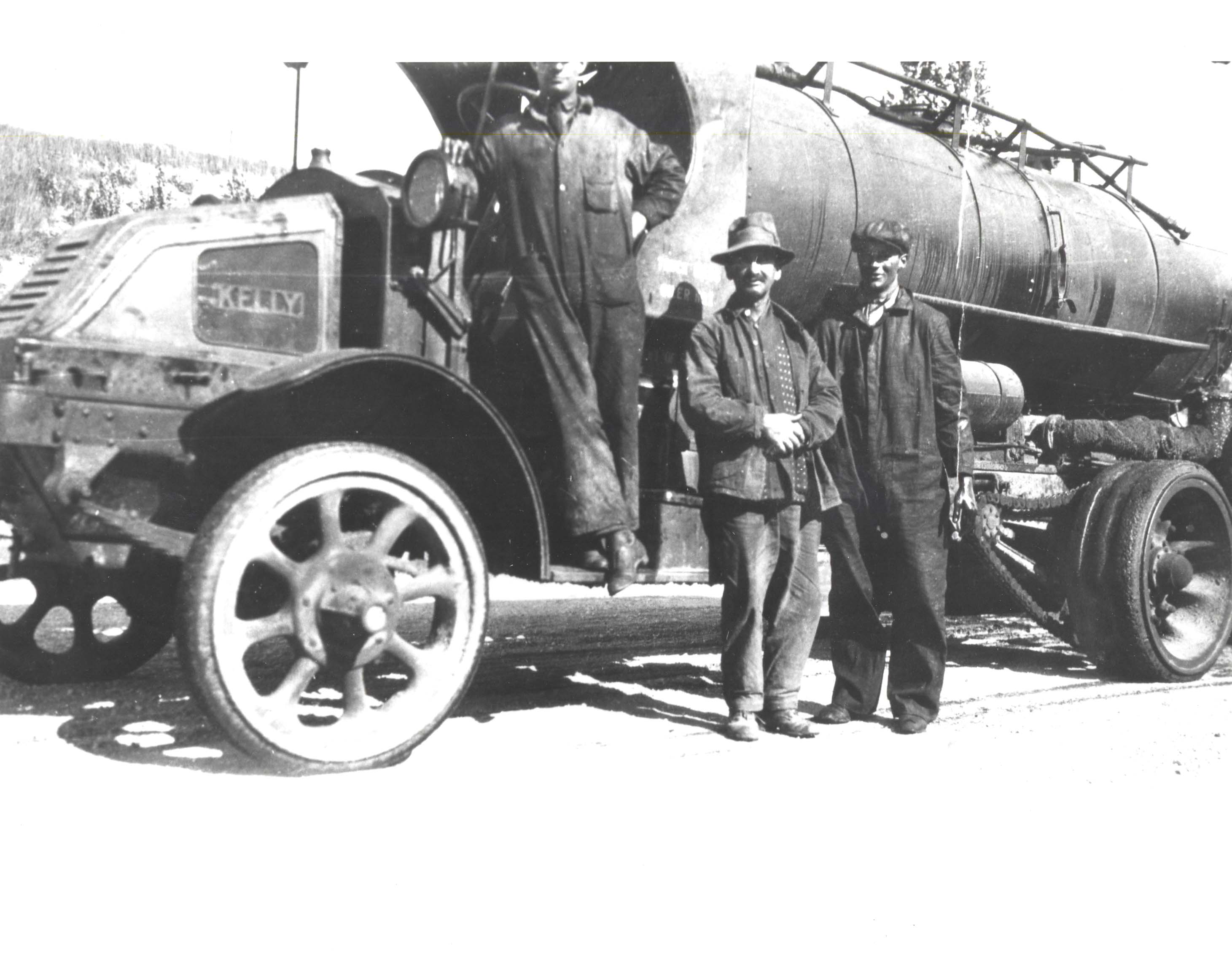 Paving No. 11 highway, for the first time John Boyes II, Road foreman(centre) - others unknown Roads - maintenance and building Boyes, John II