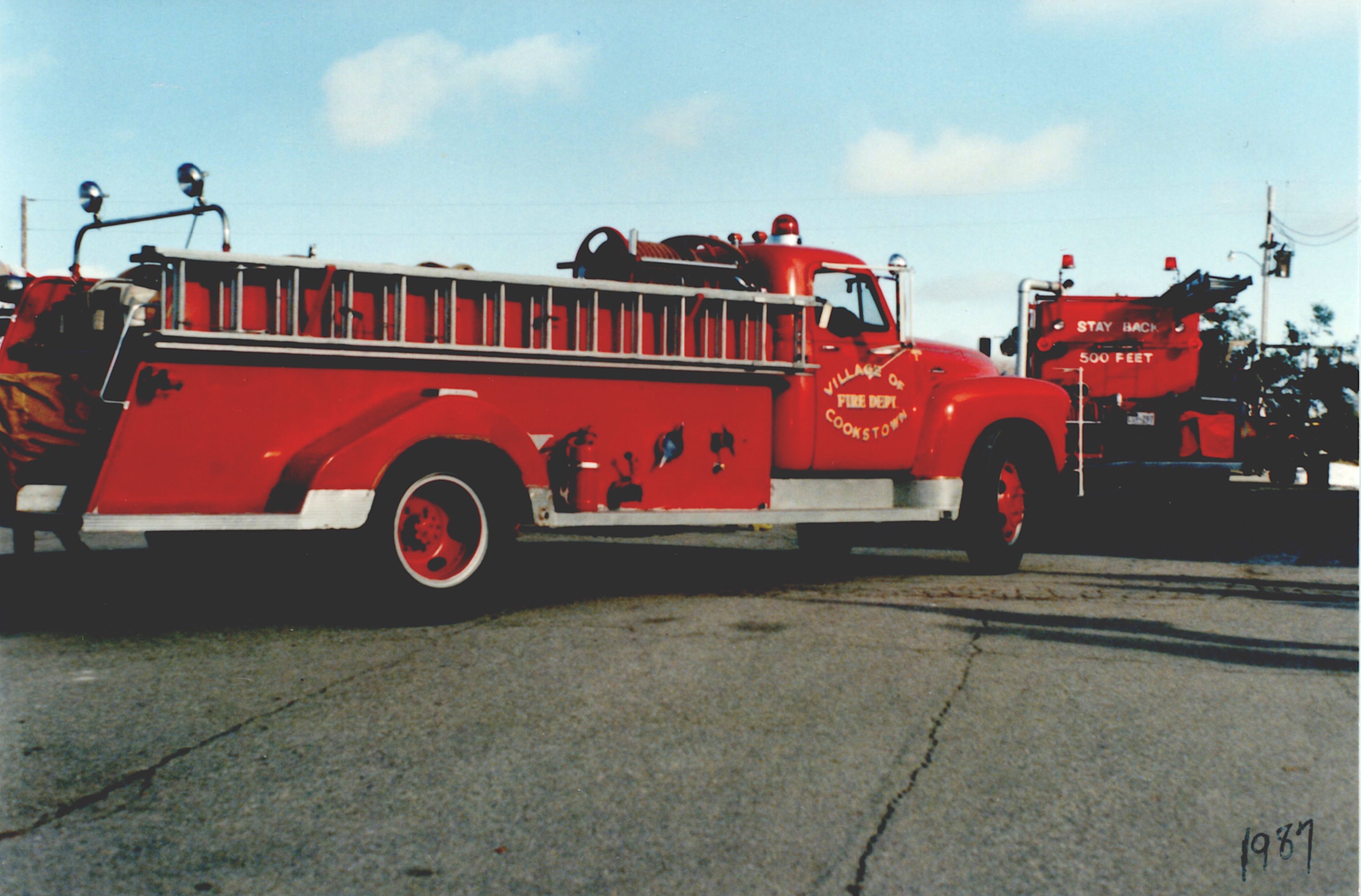 Photo of a red fire engine taking part in the Cookstown Fair Parade in 1987.