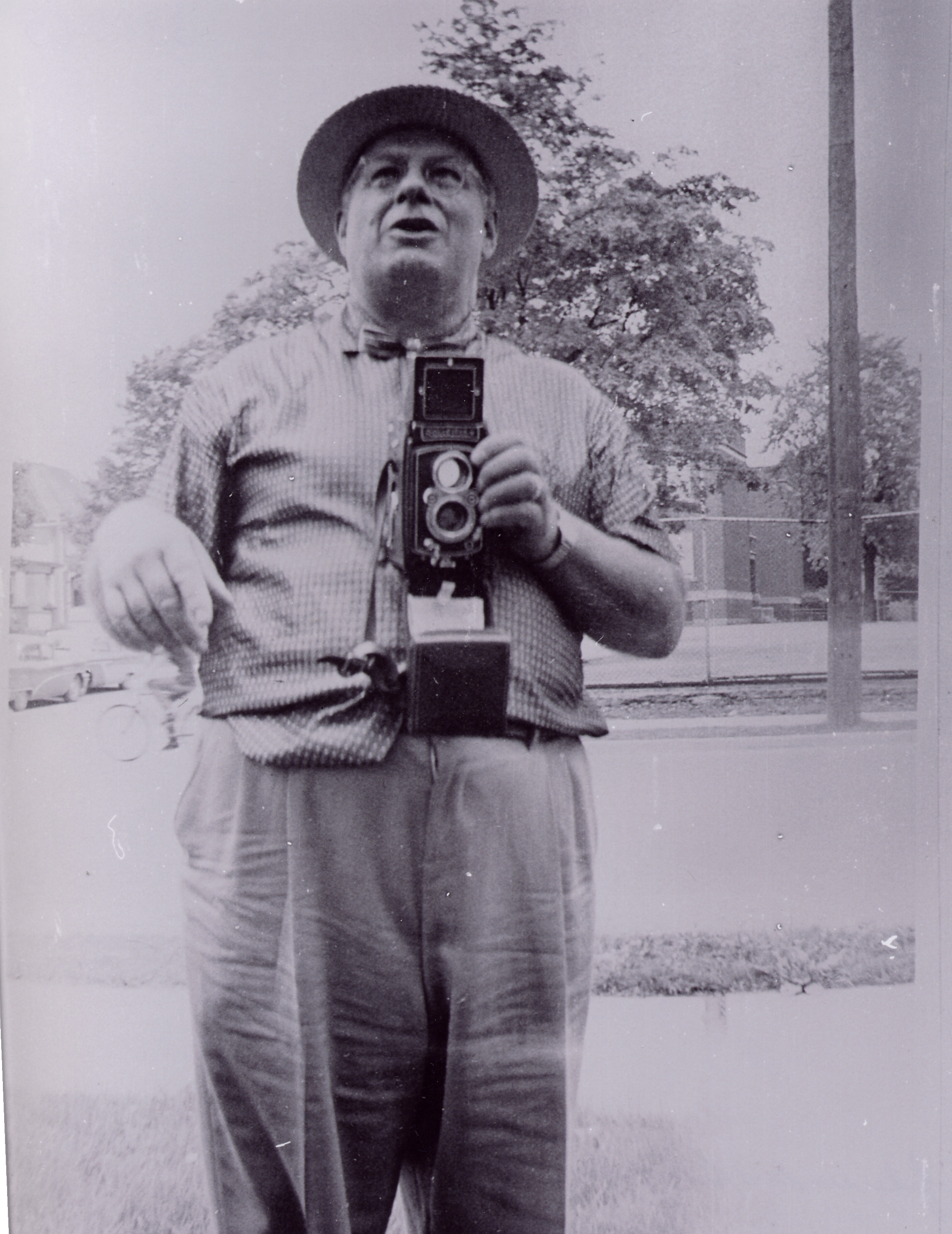 Man with a camera Caption - Yooo-Hooo" Further information is available at the Knock Heritage Site