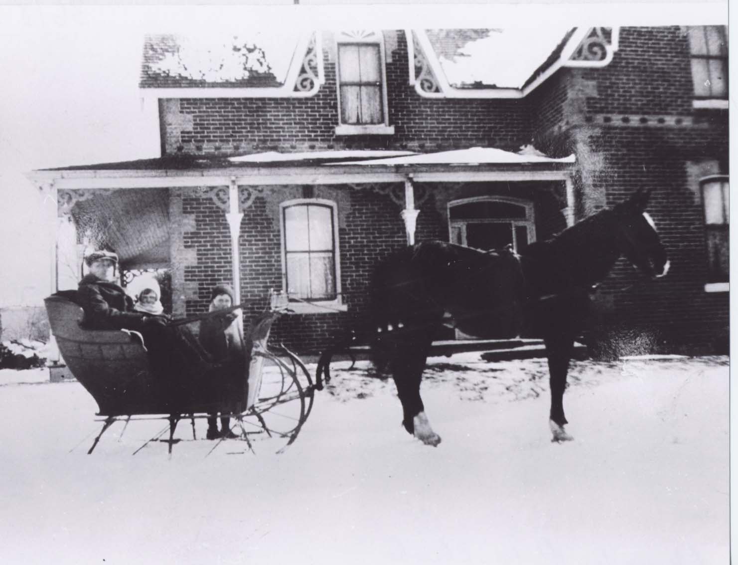 Horse and Cutter - Howard Allan and children Ron. and Grace (Mrs. Grace Constable) Further information is available at the Knock Heritage Site