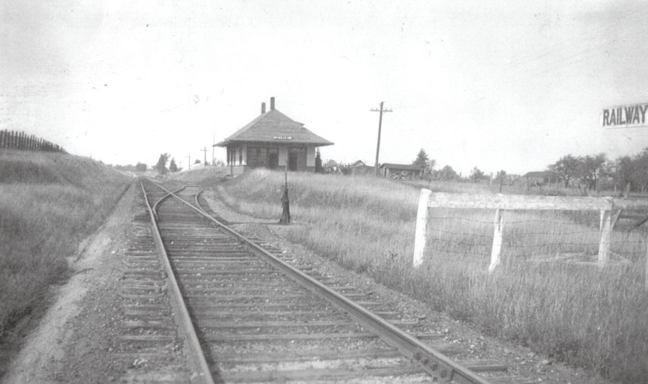 This is a picture of Vine Station, Canadian National Railway. Not the siding into the station, showing that the station was still functioning at the time of the picture. The siding was removed in the late 1930's. Further information is available at the Knock Heritage Site