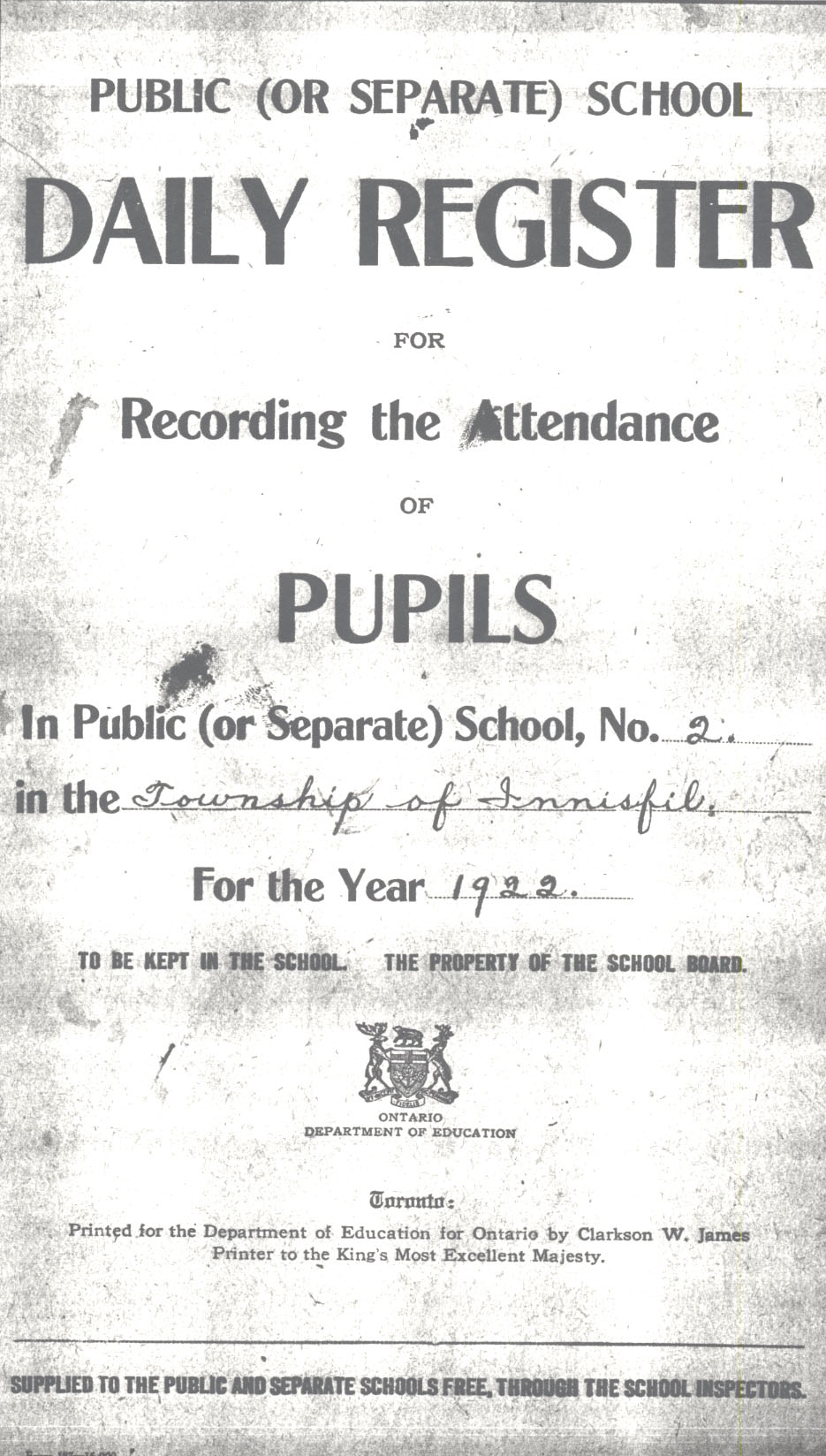 Bethesda Public School S.S. #2 - attendance register for the year 1922