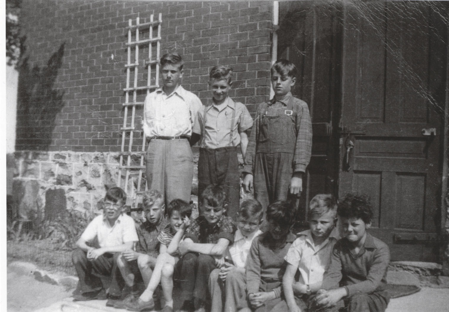 This is a photograph of all the boys who attended Killyleagh School in June of 1949. Back row: Bob Ellis, Hoyle Campbell, Art Lagace Front row: Wallace Black, John Sjerps, Ted Corbett, Glenn Lagace, Jack Shea, Ray Sutton, Danny Shea.