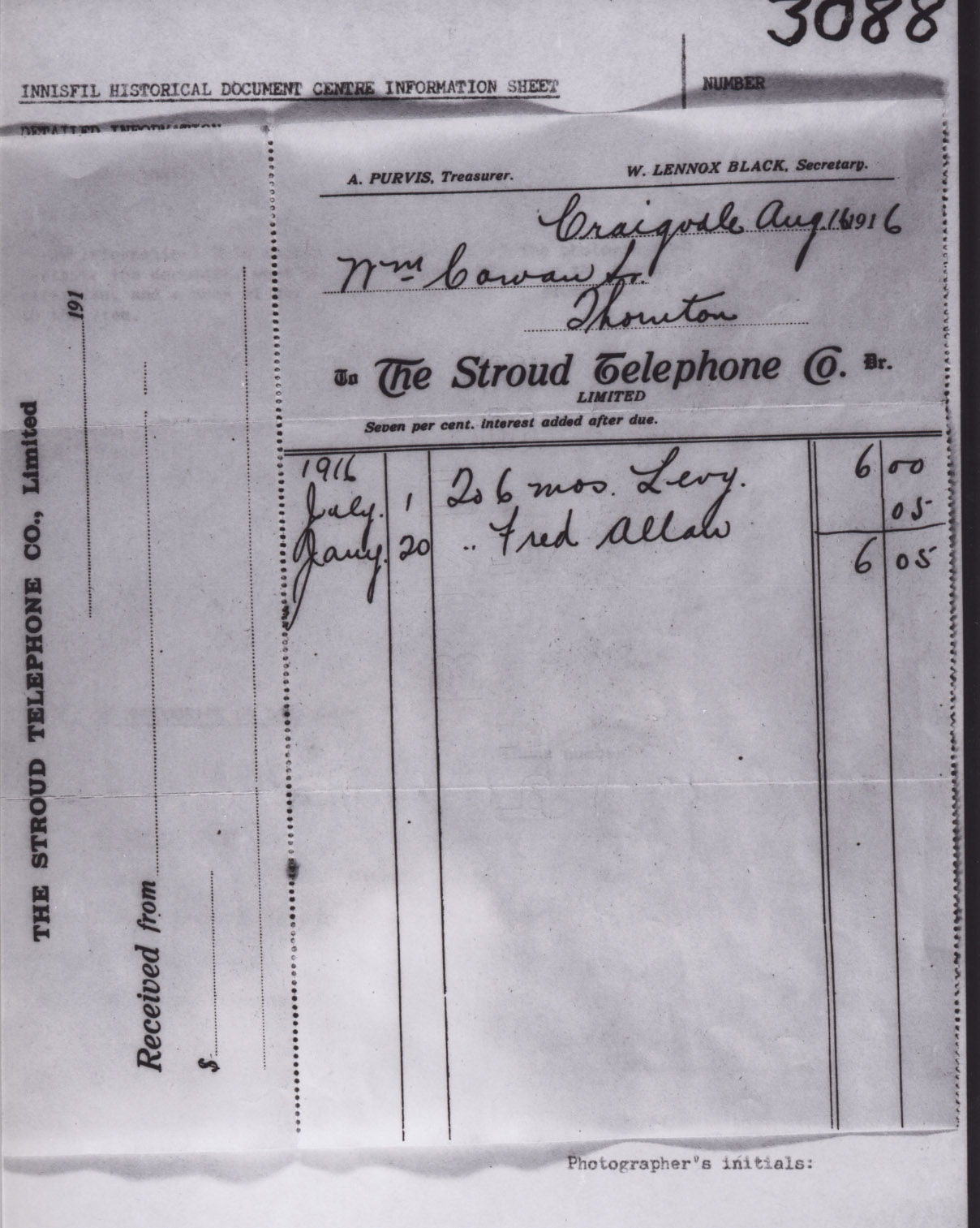 Invoices and Receipts For Telephone Service