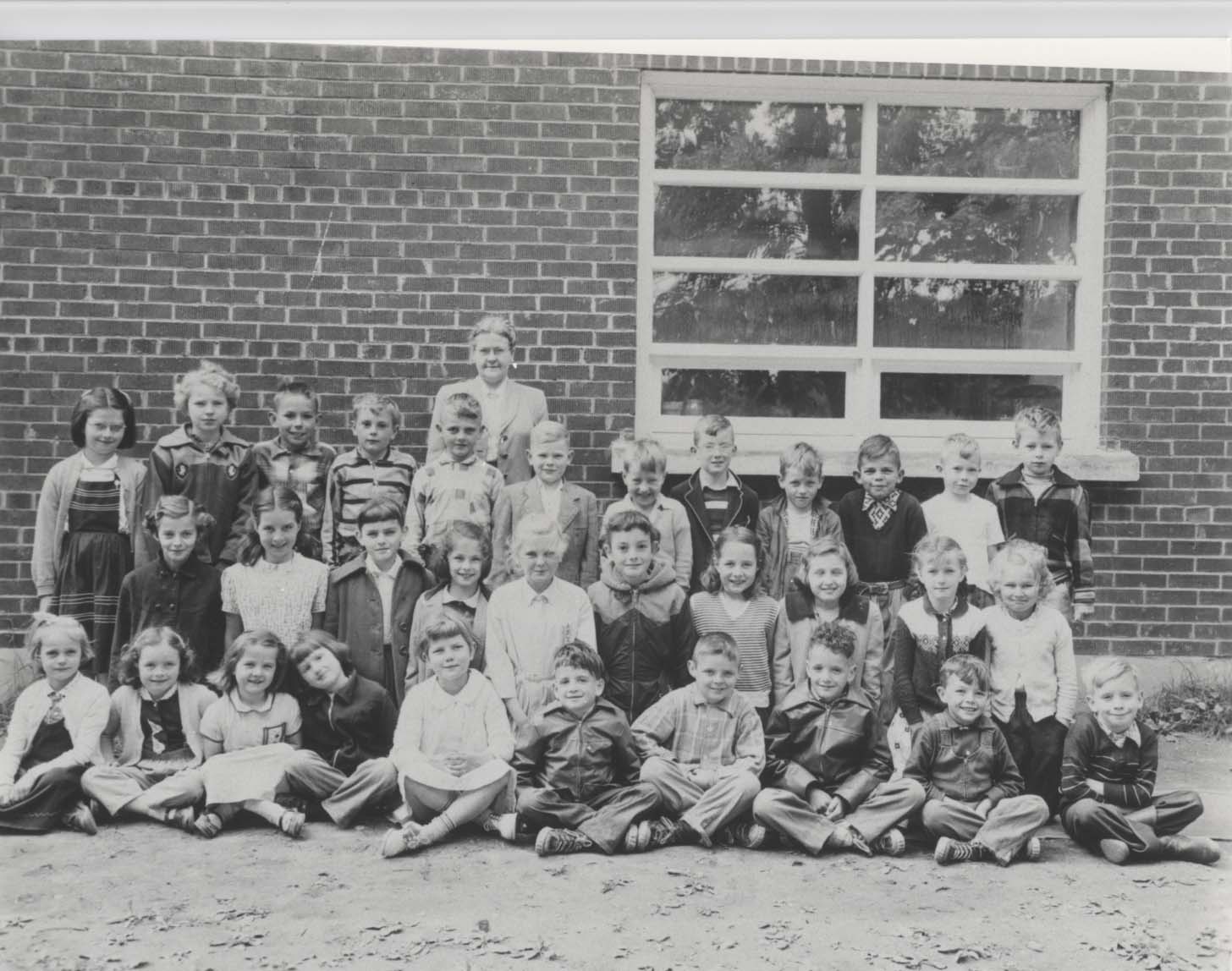 Big Bay Point School #14, Junior Room, 1957, Mrs. Tula Goheen, the Teacher: Back Row: Margaret Jobbitt, Hilda Charpentier, Ernie Warnica, David Lee, Larry Johnston, Joe Raedts, Billy Fielder, Bobbie Sweezie, Ronald Rees, Dennis Hanna, David Jensen, Alan Oakley Middle Row: Janet Fairchild, Marvella Pitcher, Zita Charpentier, Mary Rae Jobbitt, Ava Lee, Betty Cranfield, Leona Pitcher, Deana Wright, Jill Burridge, Ann Smith