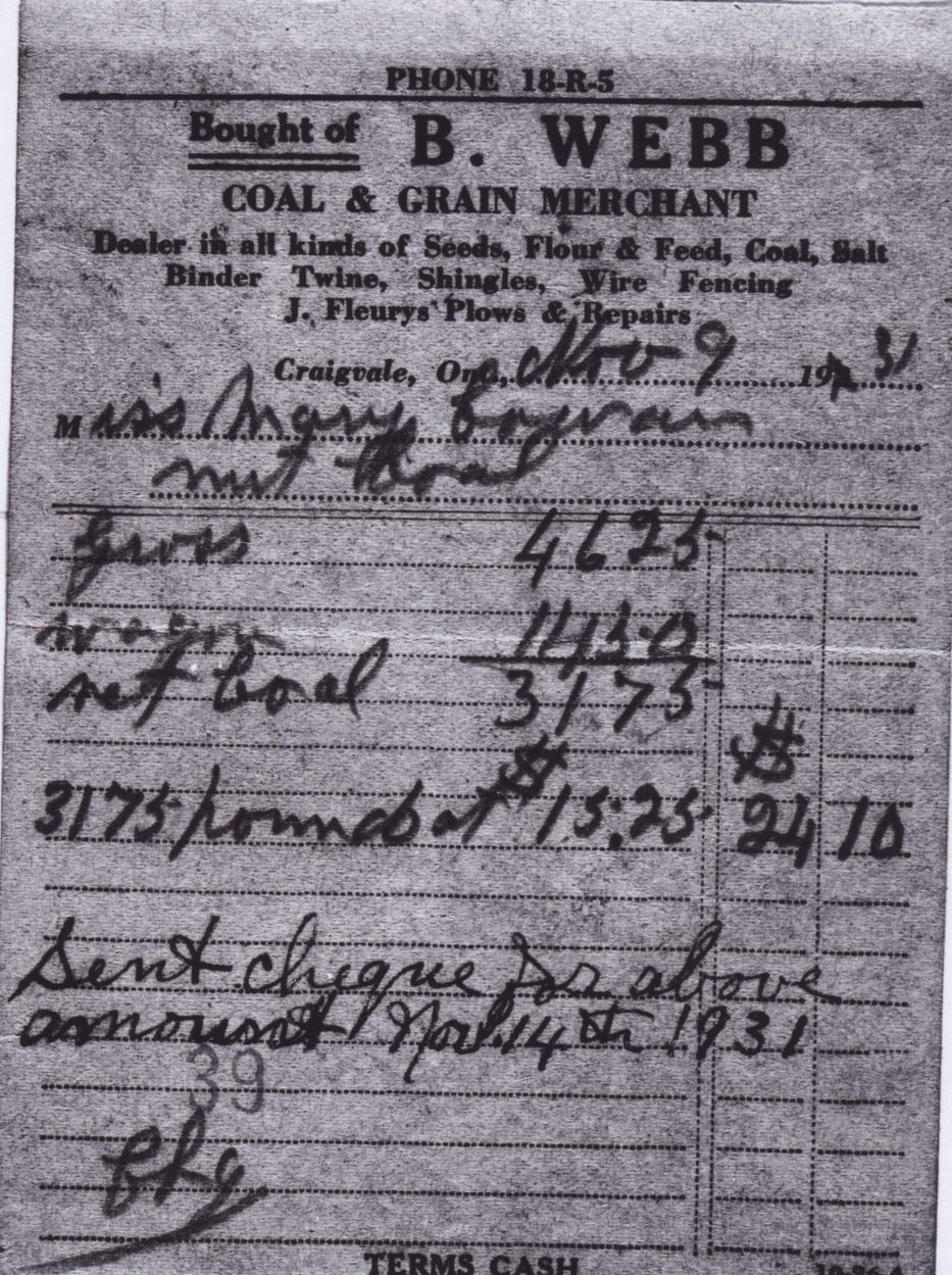 Envelope, photographed for postmark of Craigvale Post Office and invoices coal and grain merchant, Craigvale. Further information is available at the Knock Heritage Site