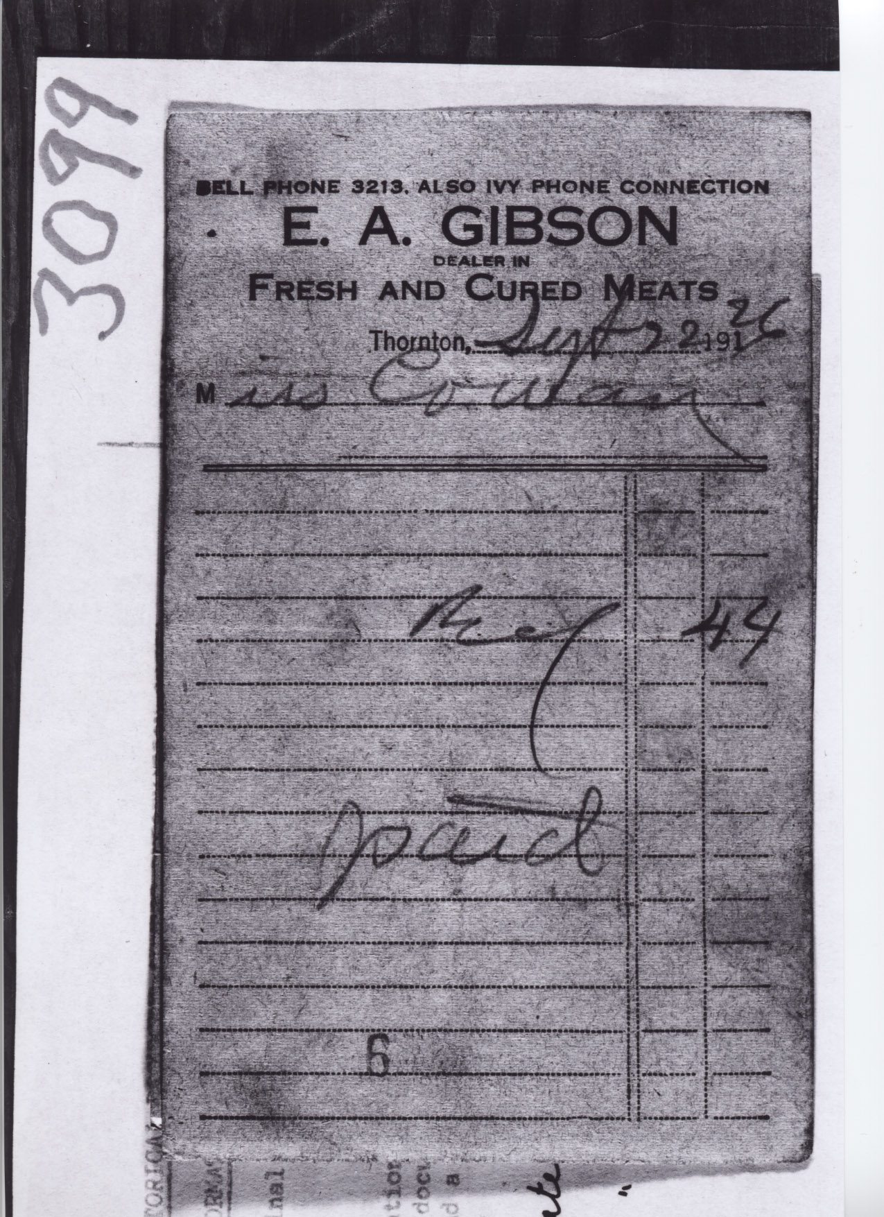 Statement from E.A. Gibson, Thornton Business-Butcher, Ivy Also on file is statement from A.W. Green, Grain Merchant, Stroud, On. Further information is available at the Knock Heritage Site