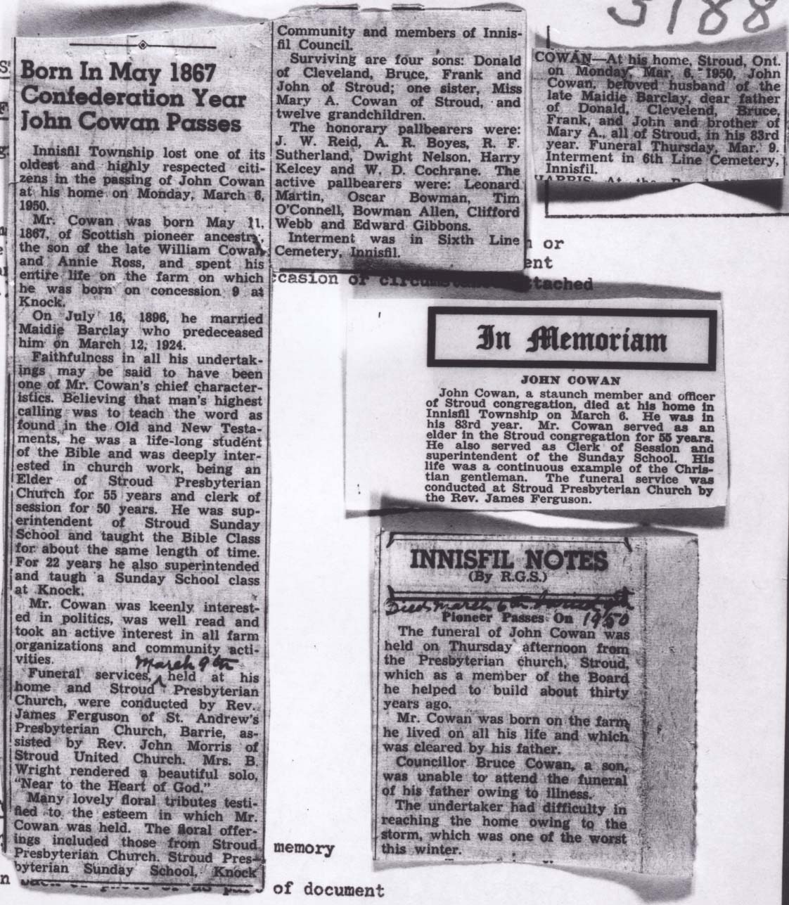 Social Events -Funeral & Newspaper John Cowan
