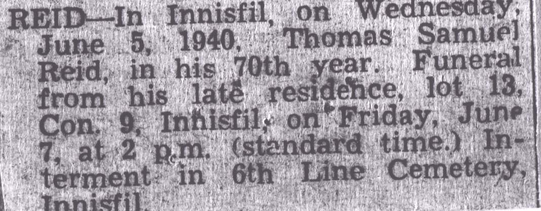 Obituary of Thomas S. Reid on June 5, 1940 Social Events - Funeral Reid, Thomas S.