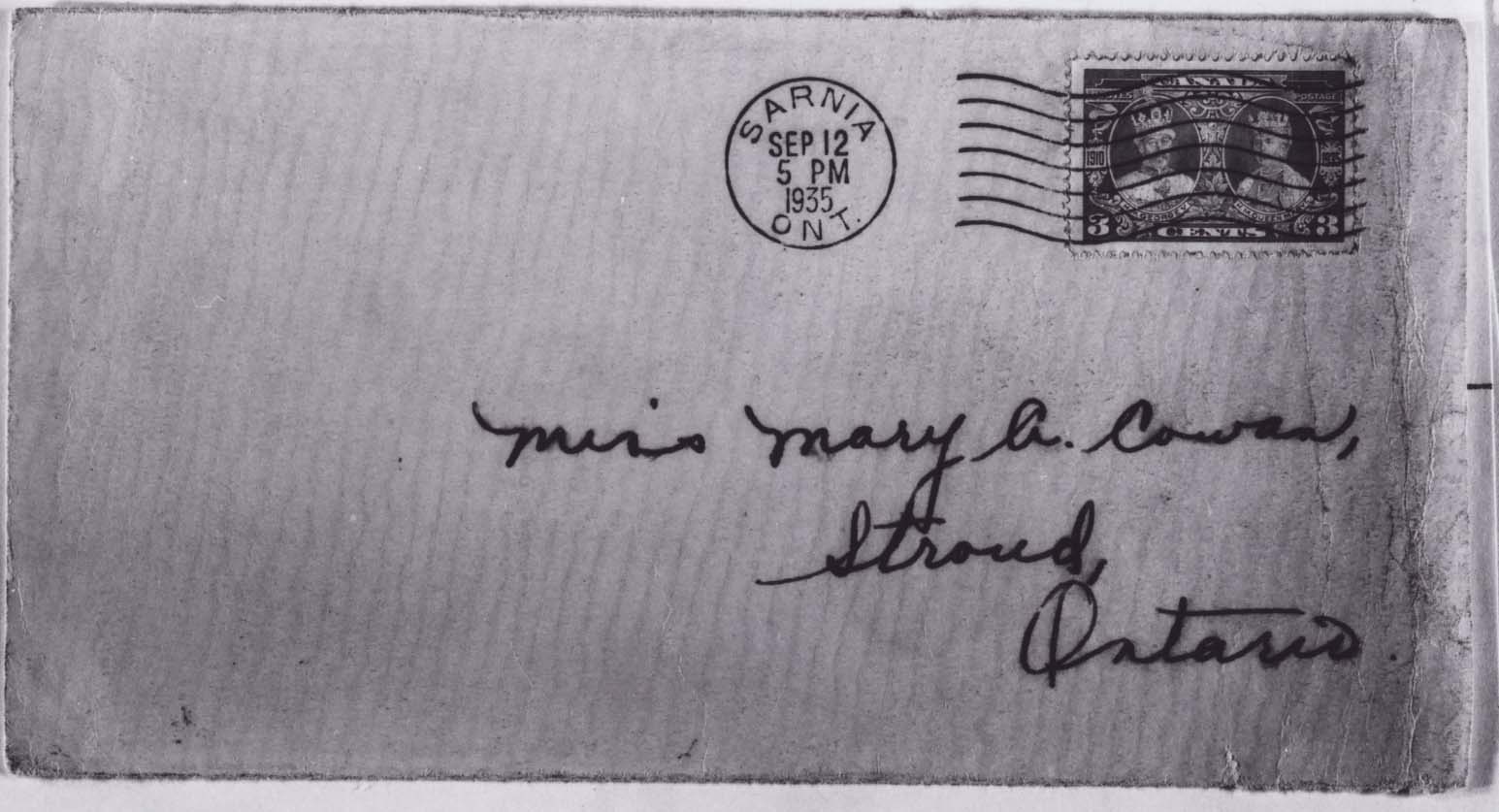 Letter to Miss Mary Cowan from her niece Janet Terrell in Sarnia Further information is available at the Knock Heritage Site