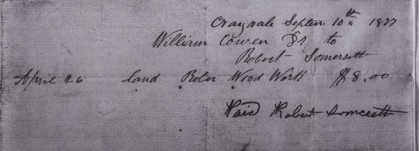 Receipt to William Cowan from Robert Sommersett of Craigvale. Further information is available at the Knock Heritage Site