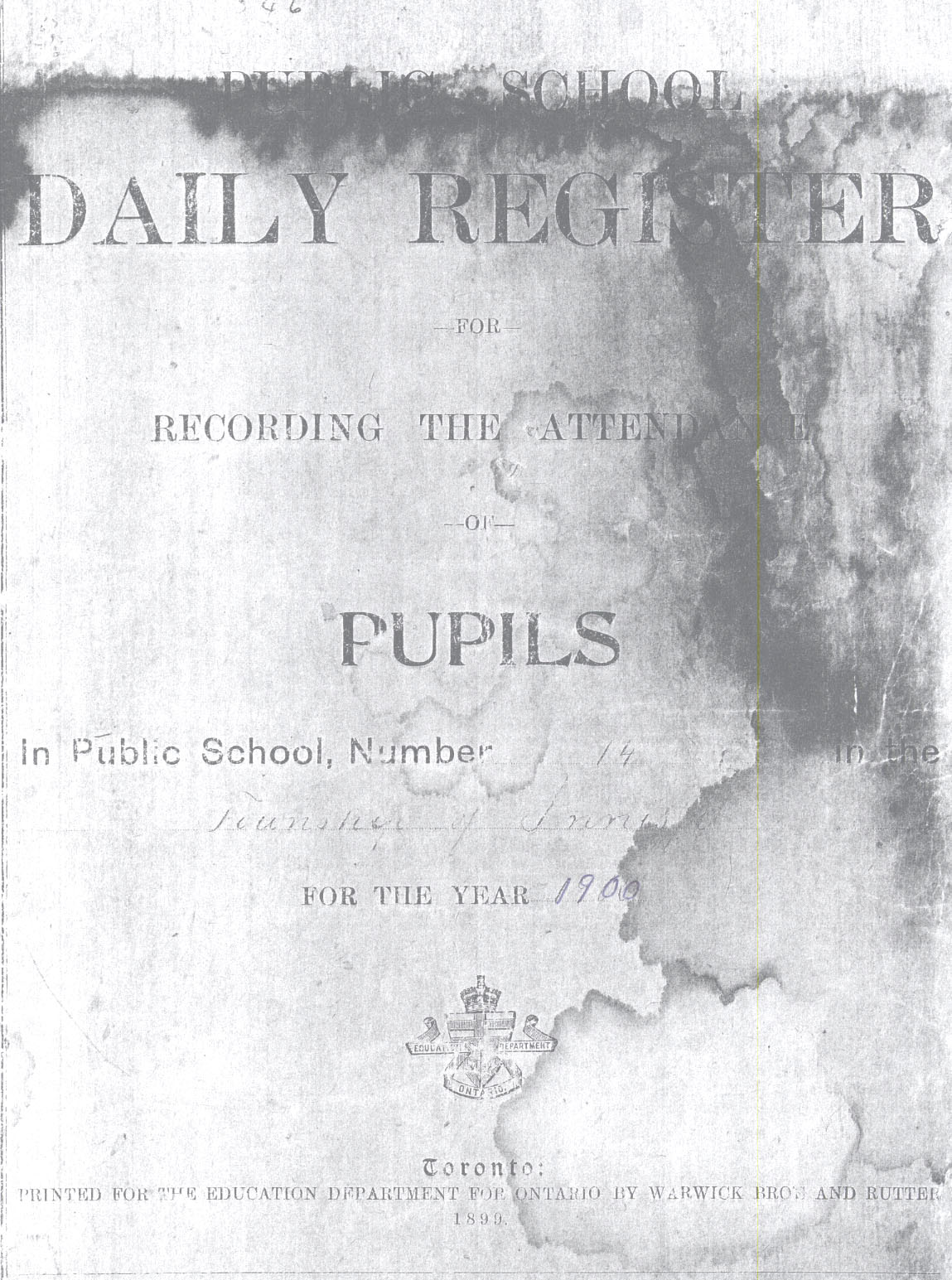 Daily Attendance Register S.S.14 Big Bay Point School 1900 - Original in Simcoe County Archives See #3970 for summary of events and a partial record of teachers