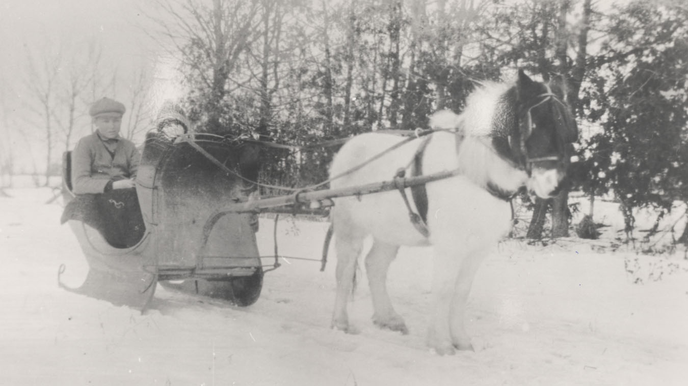 Black and white photograph. SLEDS AND SLEIGHS - HOUSTON - PONY