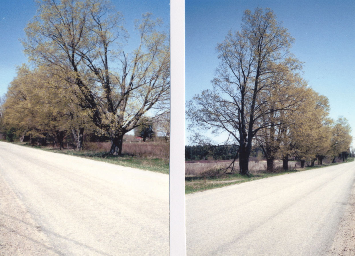 Maple trees, which according to family tradition were planted by William Edwin Pearson bordering the 10th line of Innisfil and east of the farmhouse located at S 1/2 of Lot 2, Concession 10, when he was 18 years of age. William was born circa 1866 and therefore these maples would have been planted circa 1884. These trees would therefore, at the time this photo was taken have been approximately 118 years old. During the 1940's I recall my parents and I tapping these trees to make Maple Syrup for our own use. the Field and the road along which these trees stretched would flood during the Spring melt, so often we would have to put on our rubber boots and wade through the water in order to collect the sap. This photo was taken by Raymond Crane, grandson of William.