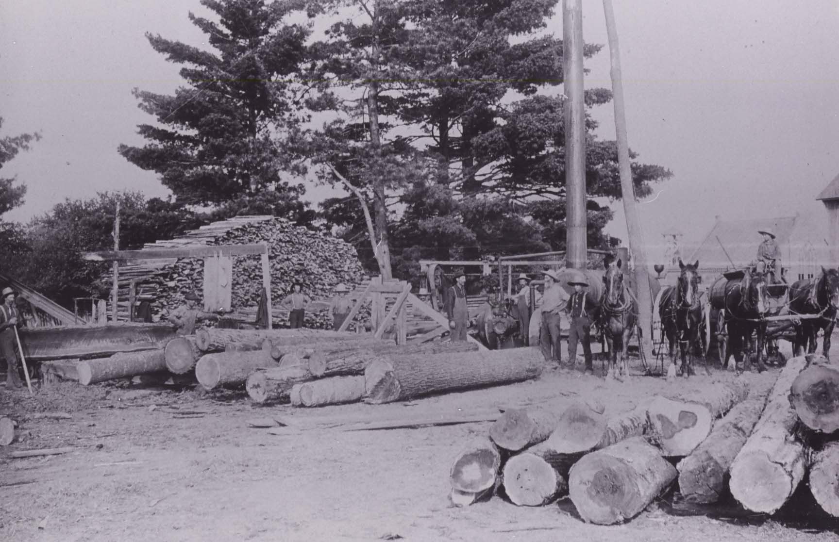 Sawmill owned by Daniel Quantz and Sons. Hanning Warnica and others. From Stroud Tweedsmuir Histories, Vol.5