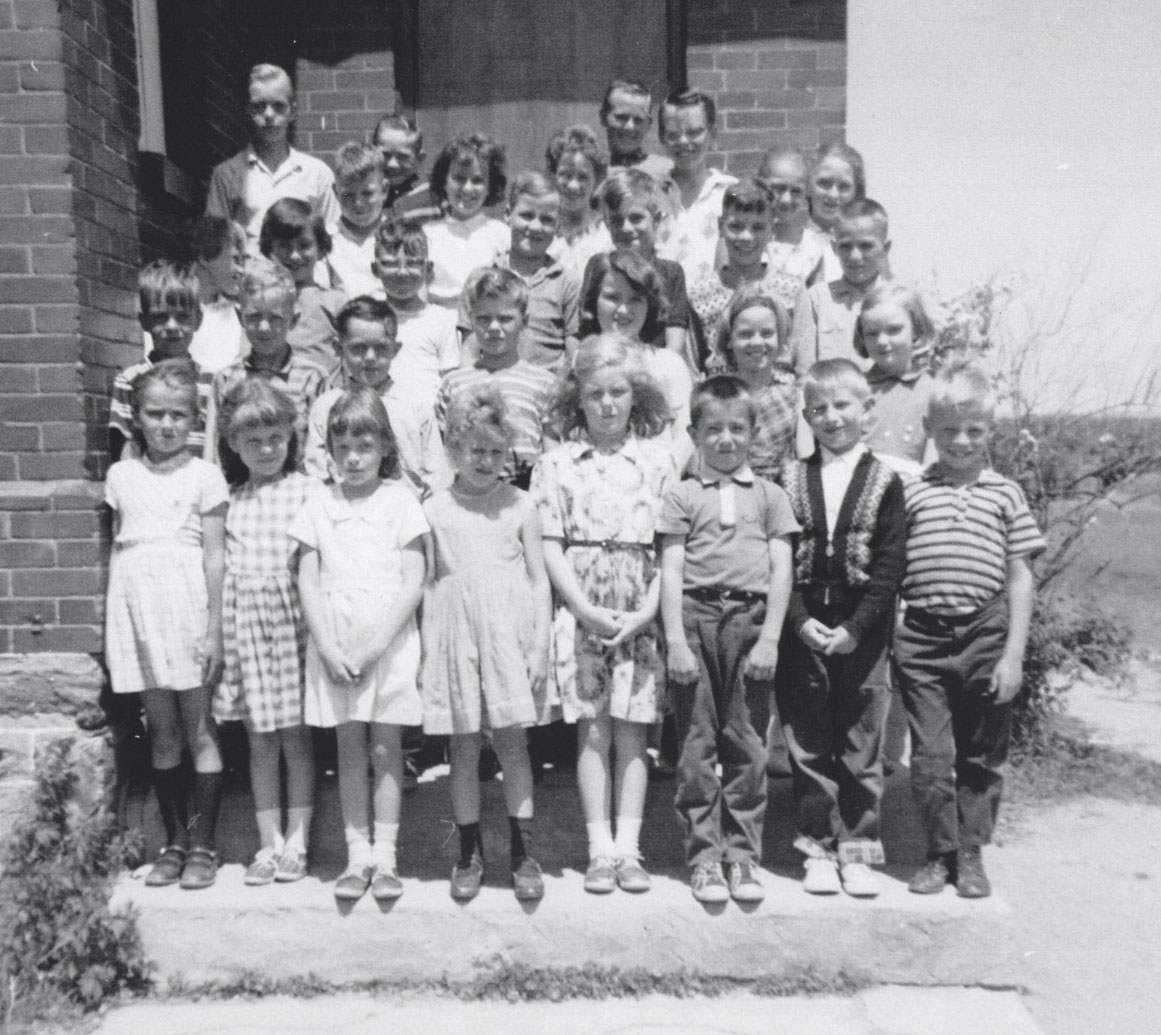 Knock School, Class of 1964-65, the photo was taken by Ruth Wake, Teacher: Front row: Anna Zlender, Debbie Cochrane, Jeanne Blackstock, Beverly Roush, Margaret Russell, David Byron, David Neil, Henry Sander, Second row: Ronnie VanEldick, Alan Webb, David Warr, Doug Roush, Heather Cowan, Linda Gosney, Judy Ferguson Third row: Sharon Roush, Debbie Byron, John Evans, George Hewson, John VanEldick, Leonard Corbett, Fred Henry Back row: Paul Pope, Doug Reeves, Alan Holt, Pat Gosney, Maryanne Sander, Derrick Steeves, Brian Pope, Thereza Zlender, Zora Zlender