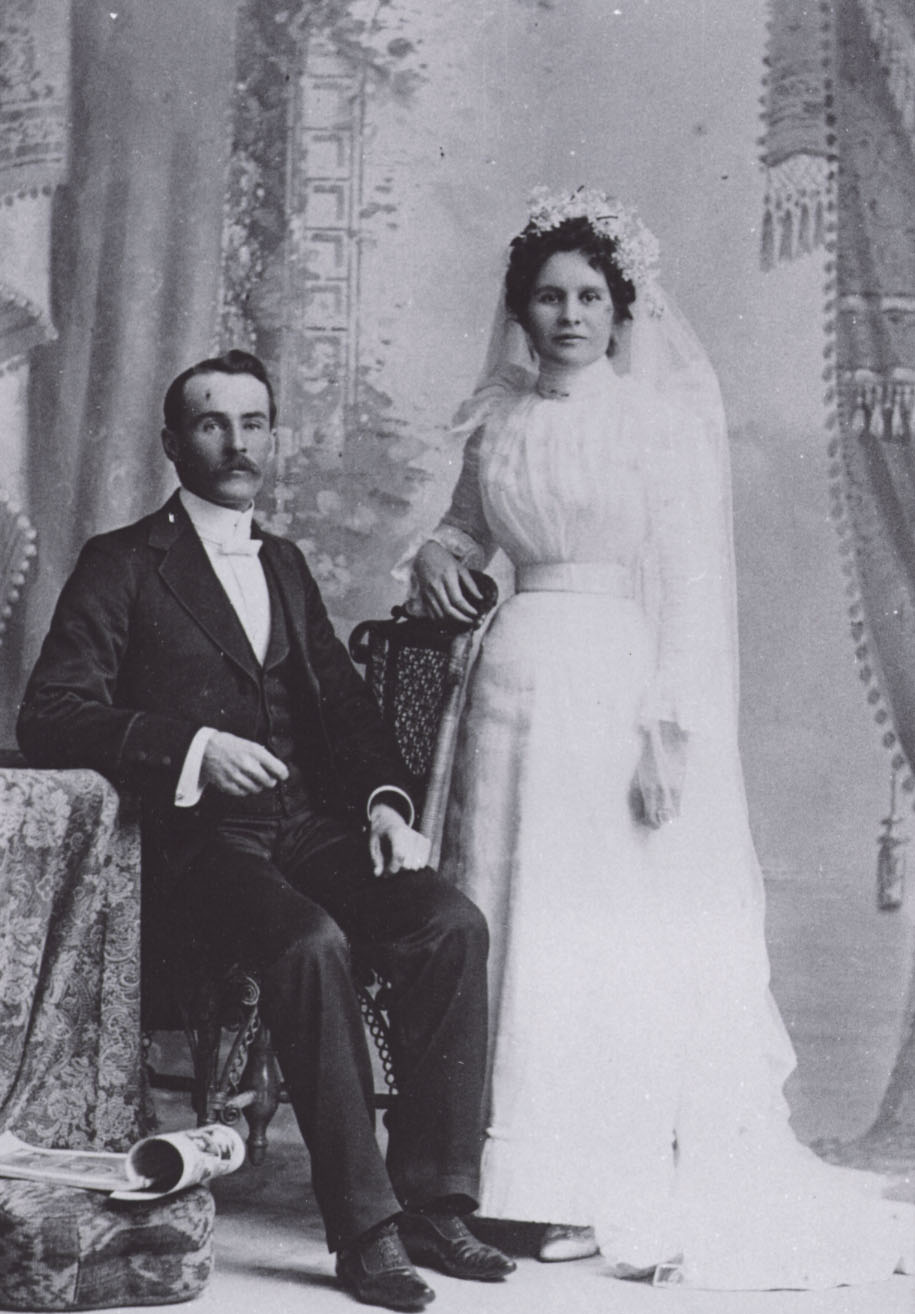 Mr. and Mrs. Irving Nelson, Carrie 32 years, Irving 28 years. Wedding June 27, 1899.