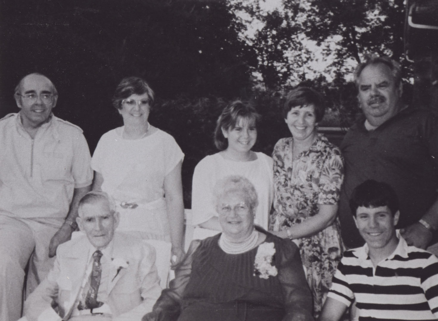 Fred Dallimore Family, Left to right - Peter Kennedy, Judy Dallimore, Christine Dallimore, Barbara Dallimore nee_______, Ted Dallimore. Front Row - Fred Dallimore, Lillian (Johnston) Dallimore, Scott Dallimore.