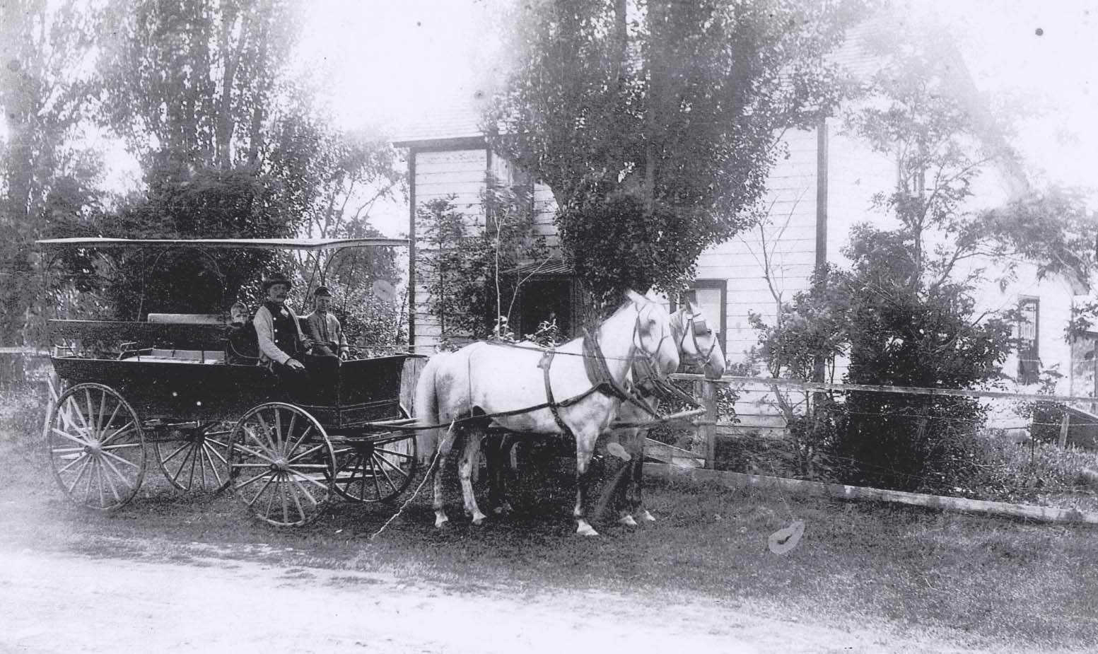 This photo shows the Jitney service (horse drawn) which ran from Lefroy Train station to Belle Ewart and Tent City, carrying goods and passengers to and fro.