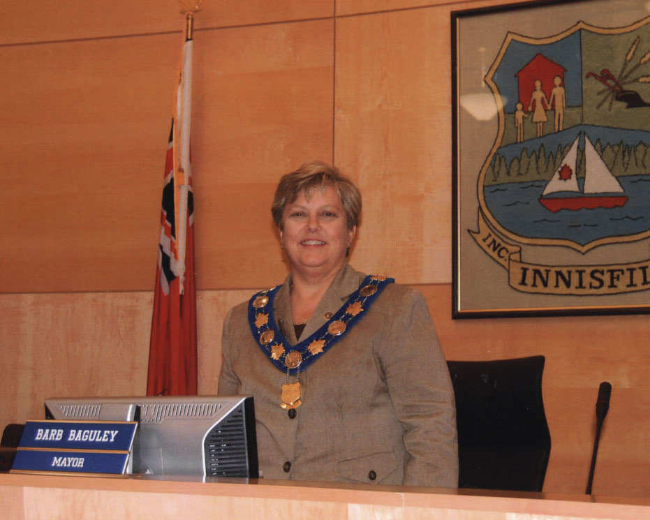 Mayor Barbara Baguley, first Lady Mayor of Innisfil, elected in November 2010, presiding at her first Council meeting.
