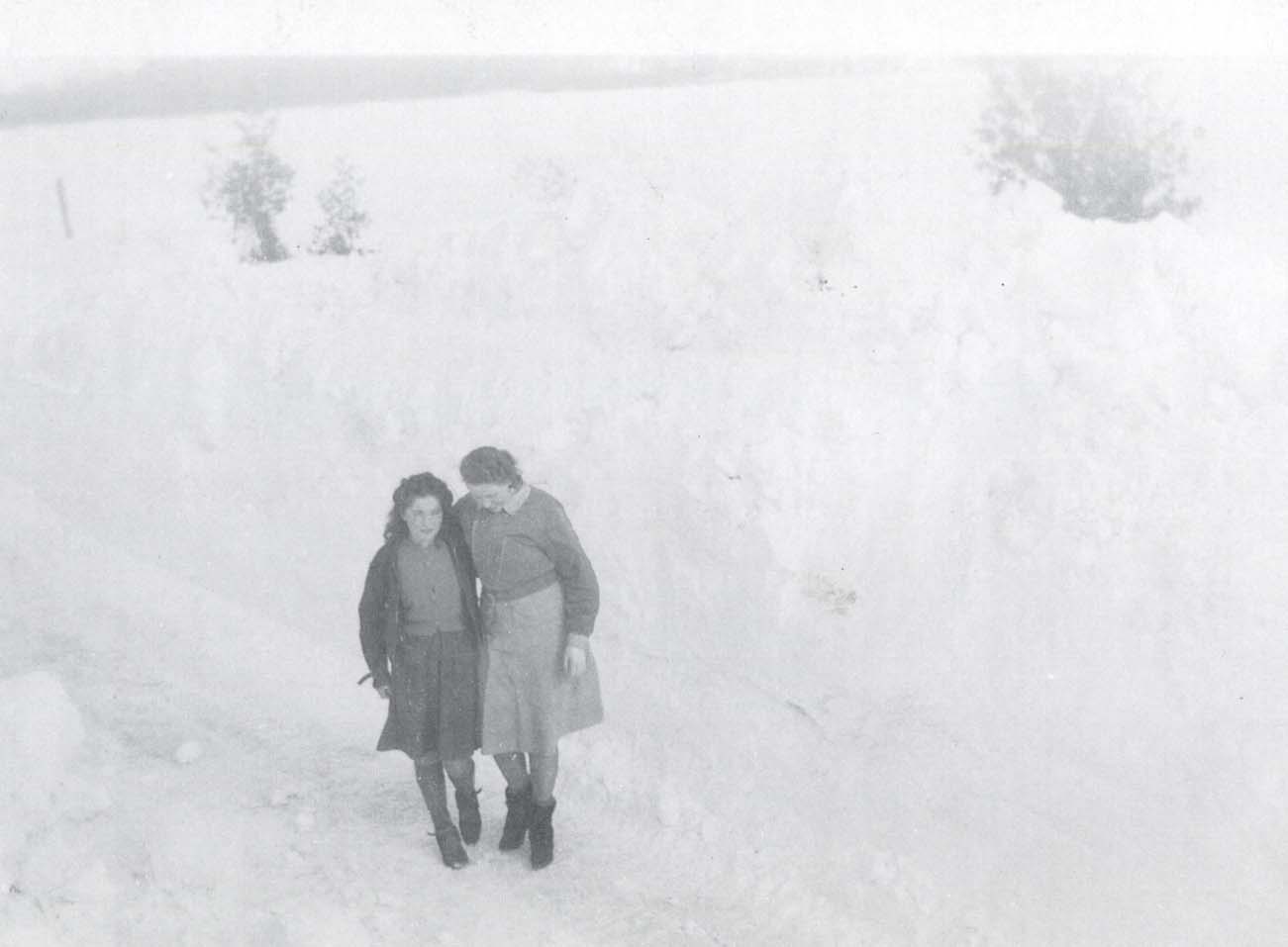 The first snow ploughing at the 5th Line, Innisfil in 1939. Muriel Webster and Harriet Wrigglesworth.